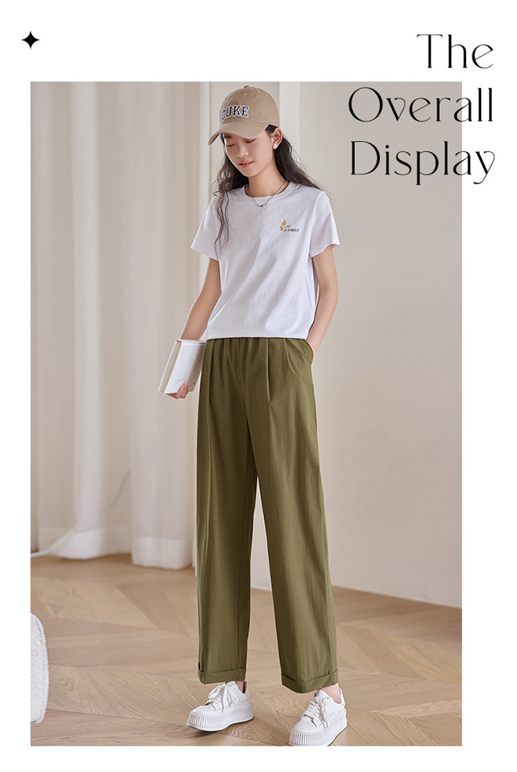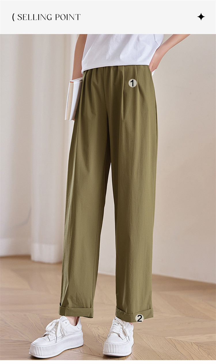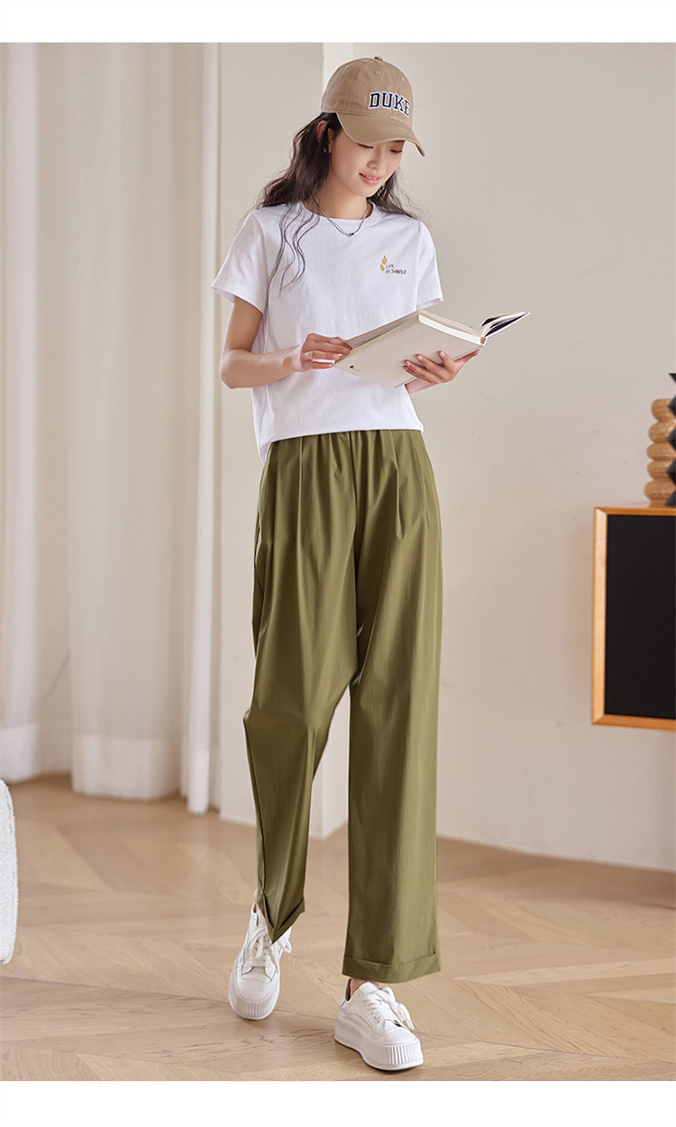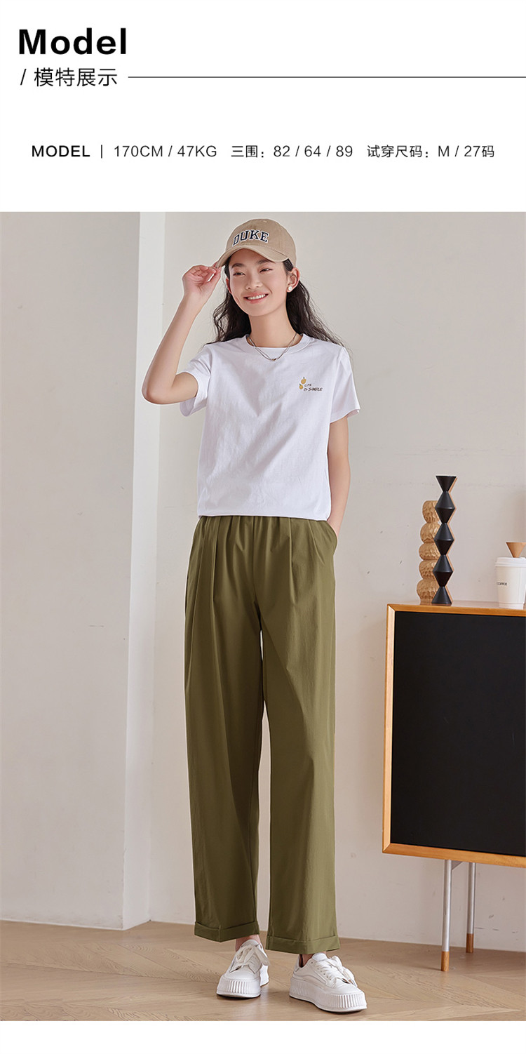 商品名称:【休闲九分裤】夏款百搭款松紧腰头压褶装饰休闲裤女 002626