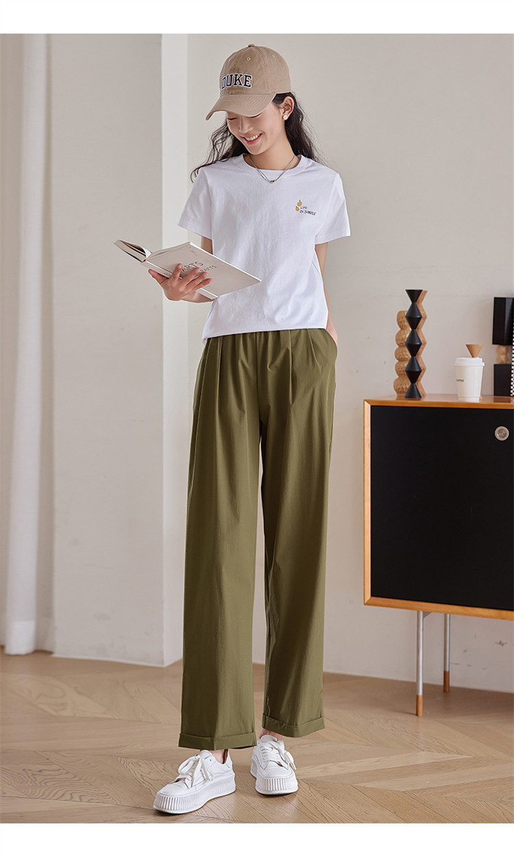【休闲九分裤】夏款百搭款松紧腰头压褶装饰休闲裤女 002626
