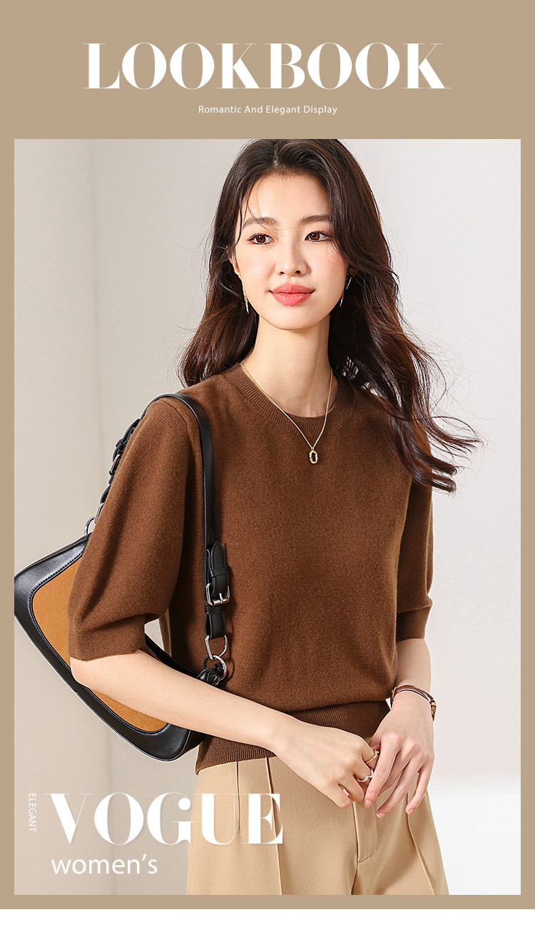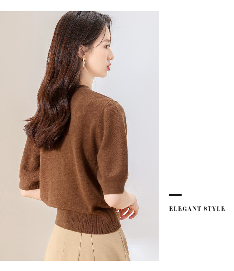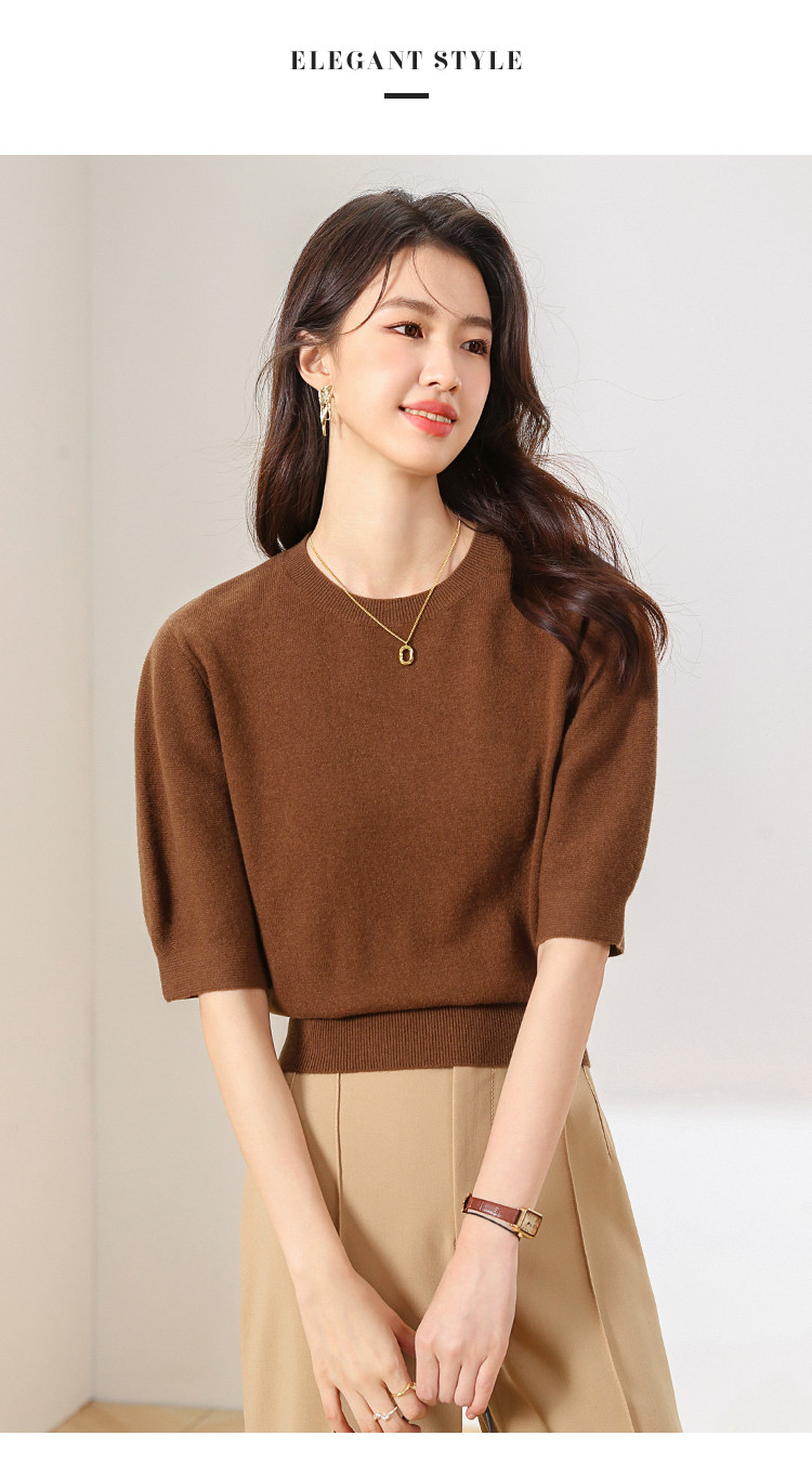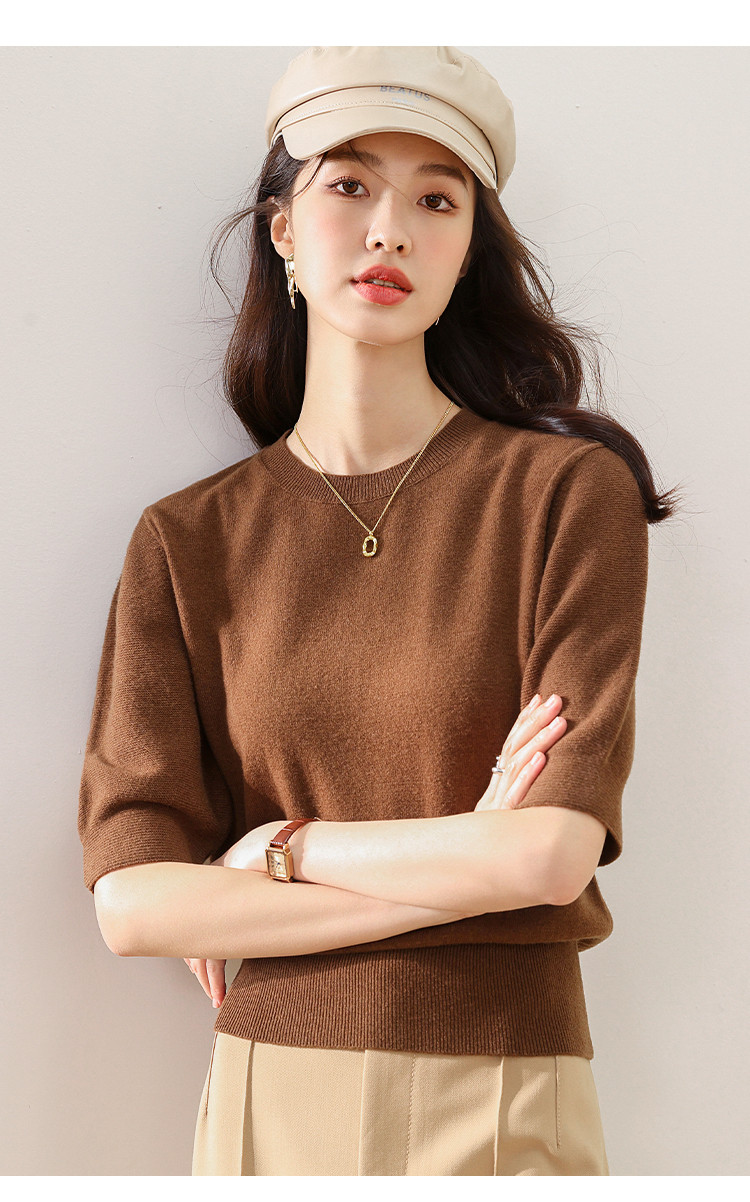 商品名称:【100%绵羊毛】纯色圆领短袖羊毛衫女T恤针织打底衫毛衣 717651