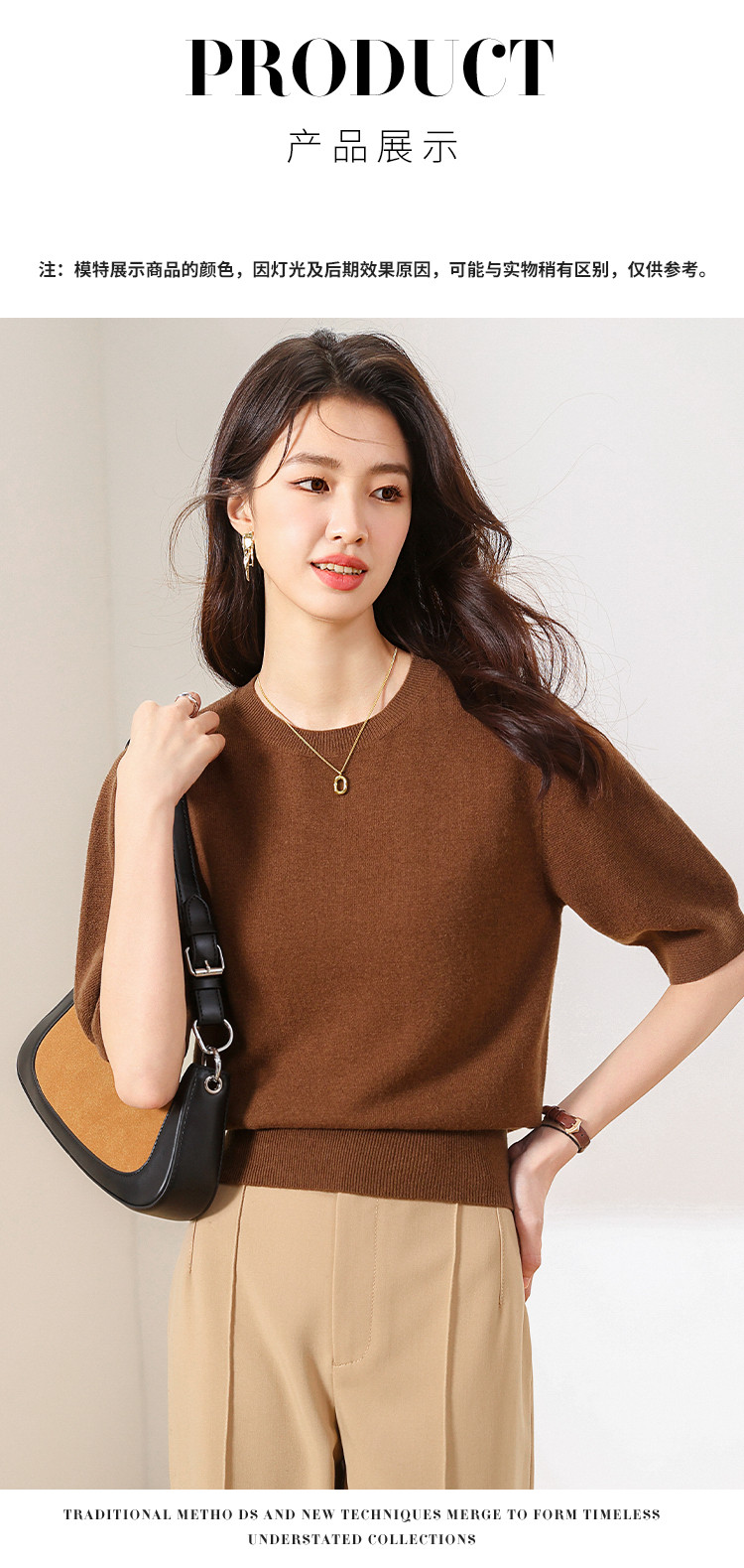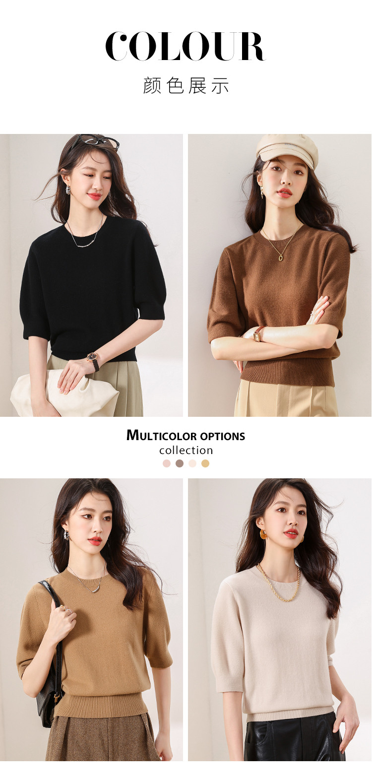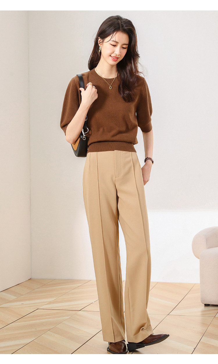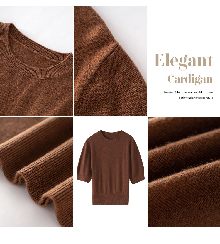 商品名称:【100%绵羊毛】纯色圆领短袖羊毛衫女T恤针织打底衫毛衣 717651