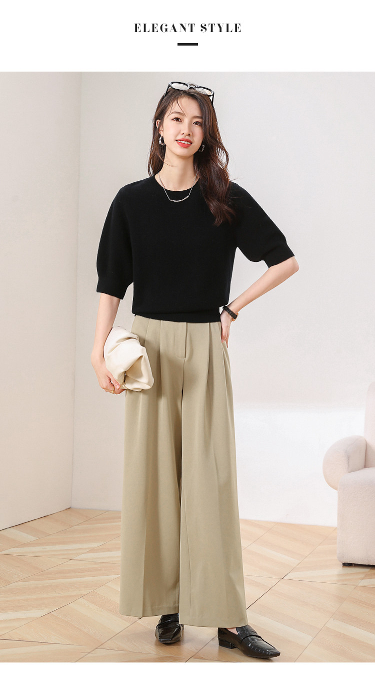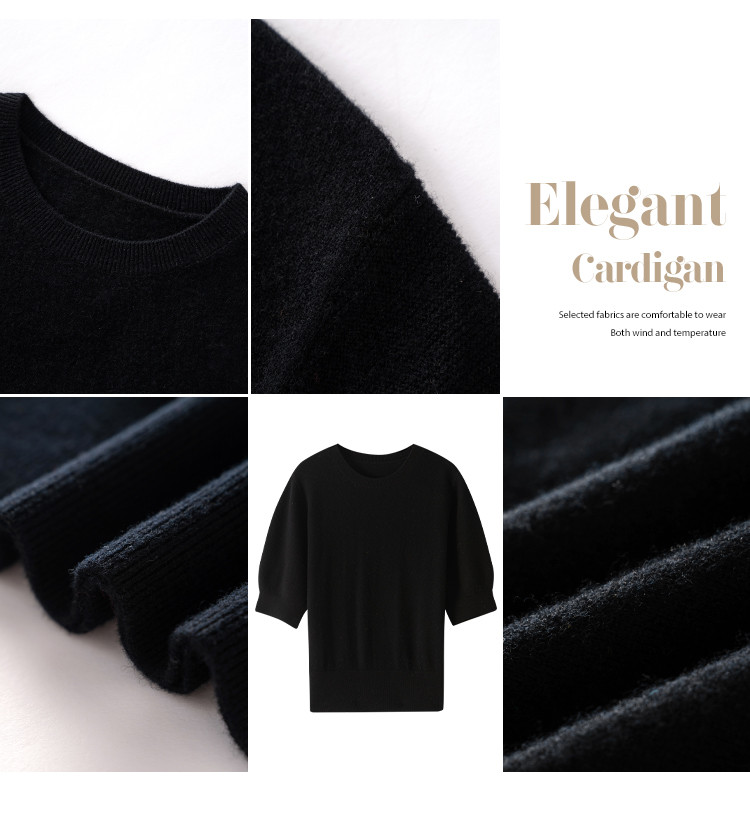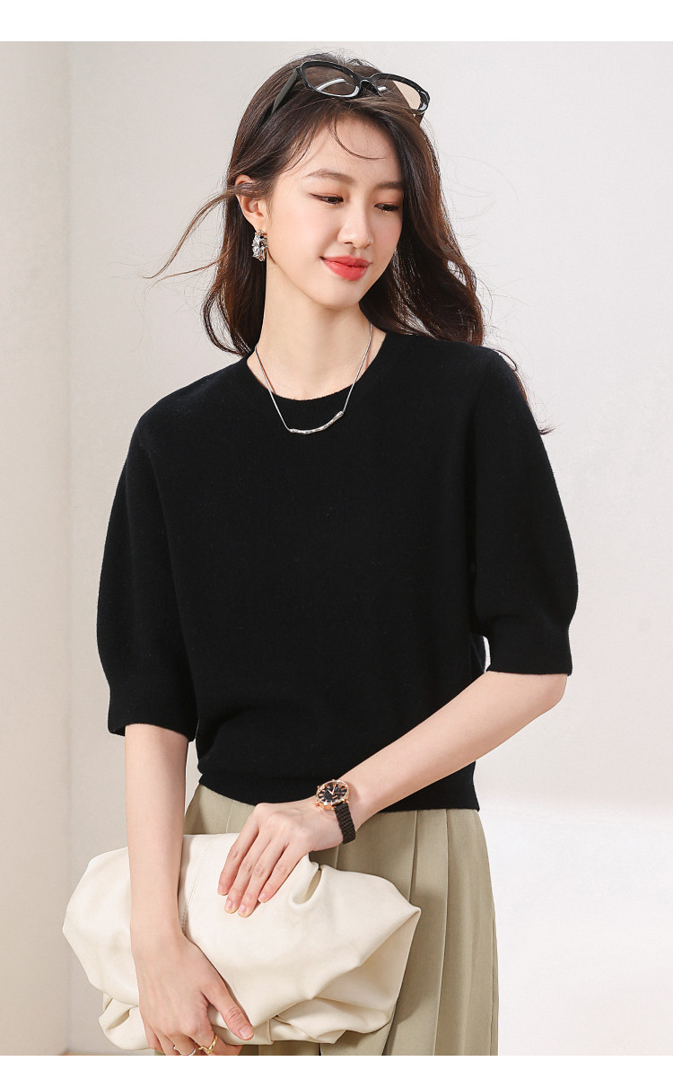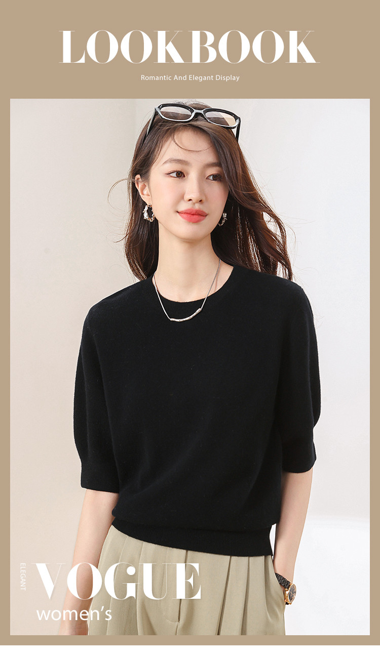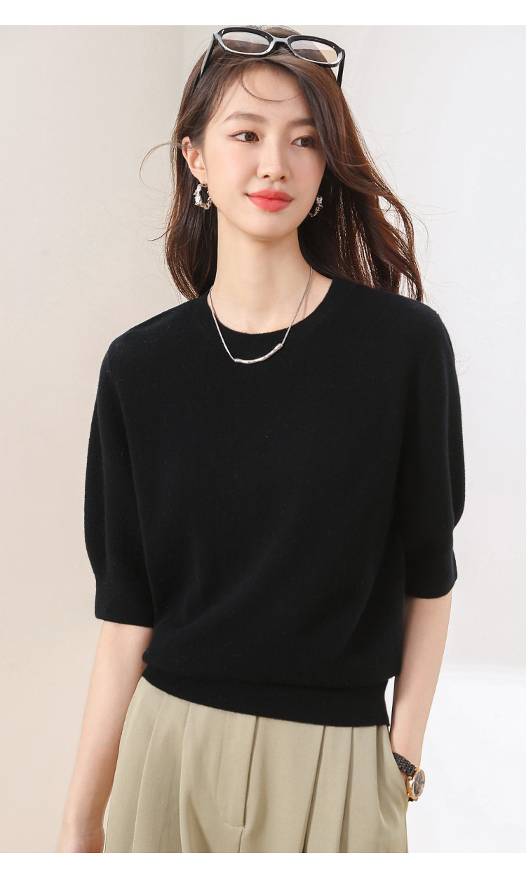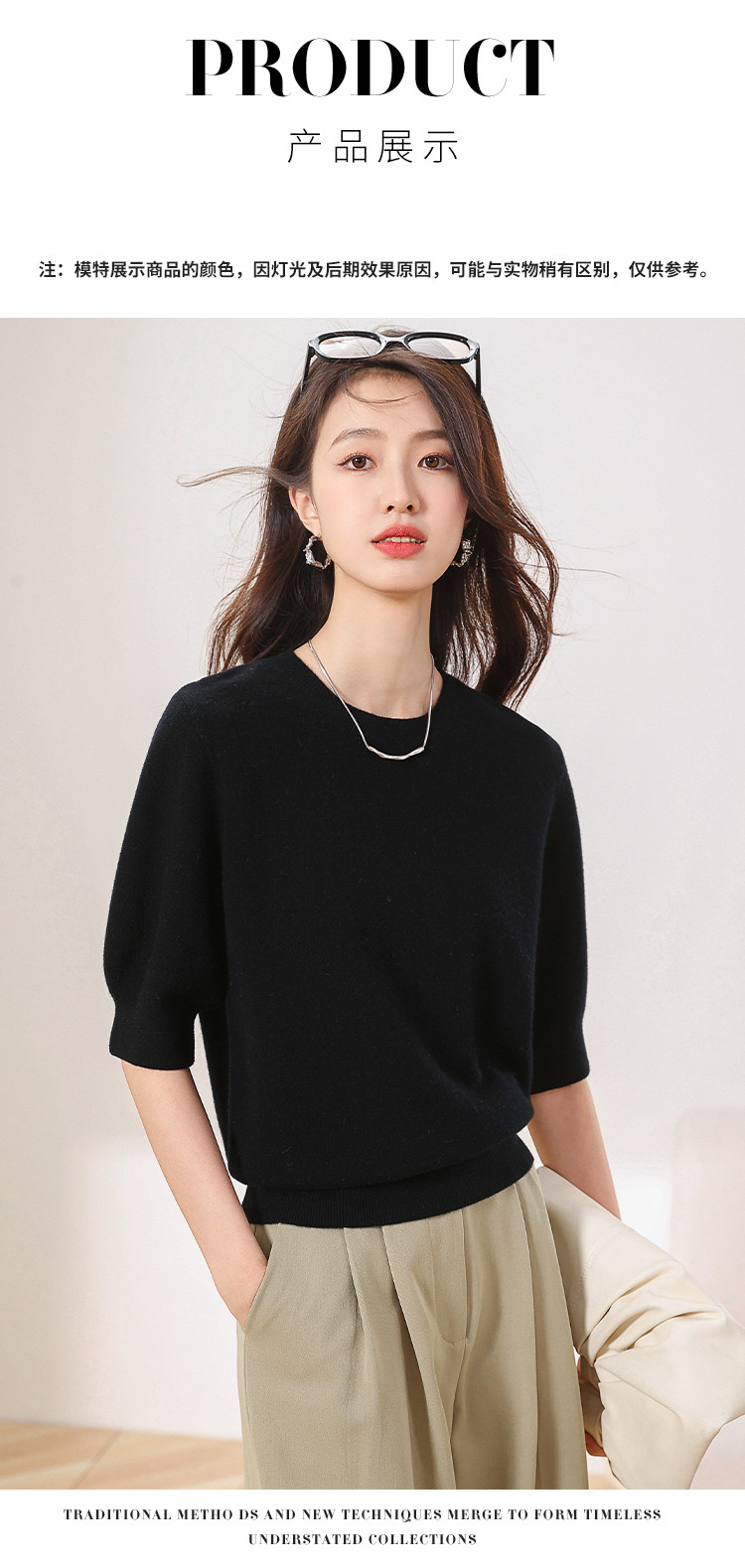 商品名称:【100%绵羊毛】纯色圆领短袖羊毛衫女T恤针织打底衫毛衣 615251