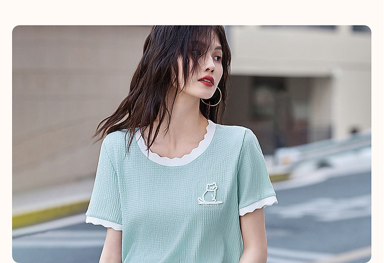 商品名称:【夏日轻龄衣橱】新圆领喵咪字母牙刷绣短袖t恤少女感女式t恤 658433