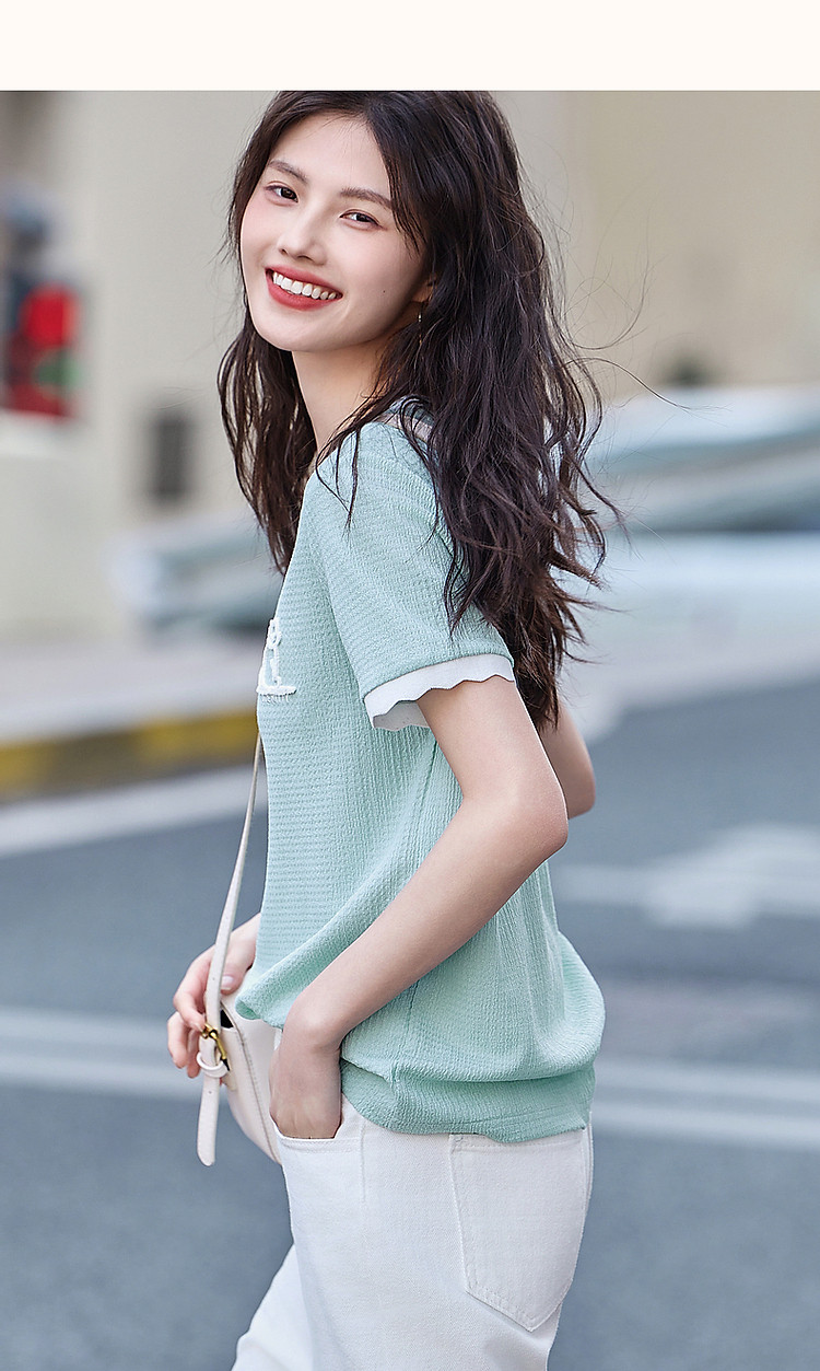 【简约时尚】夏季修身显瘦法式方领短款T恤女 851738