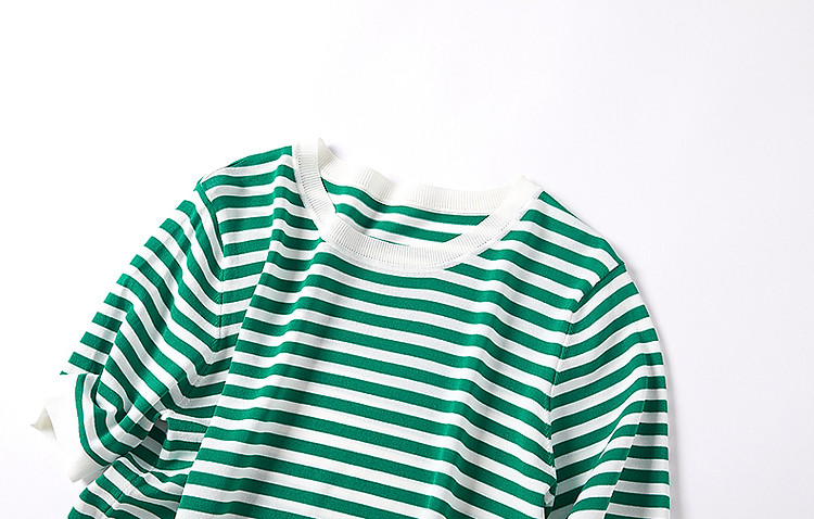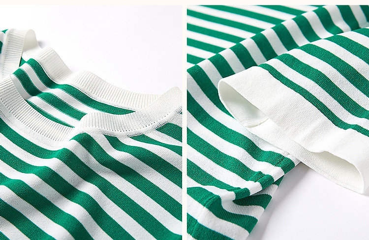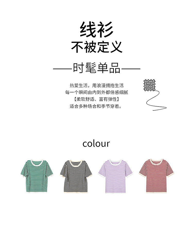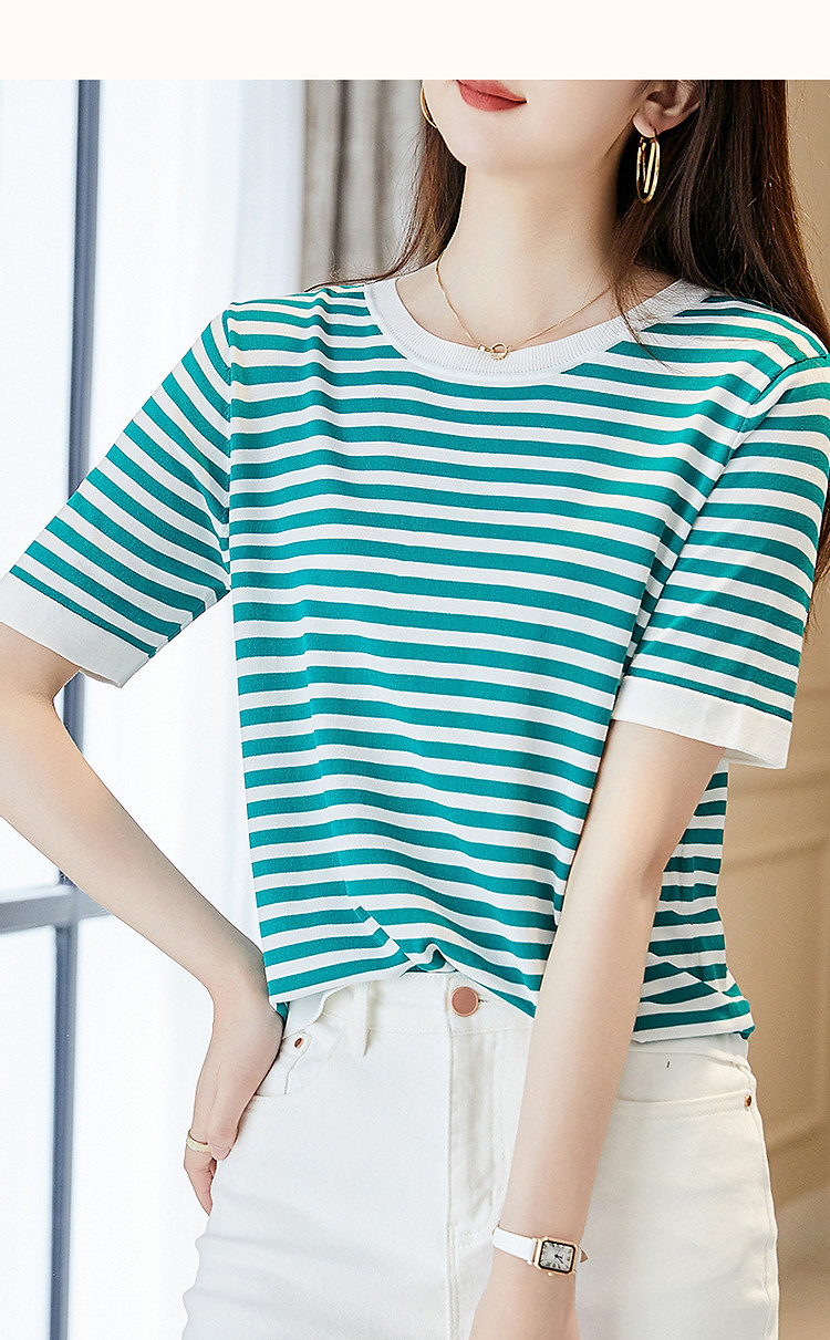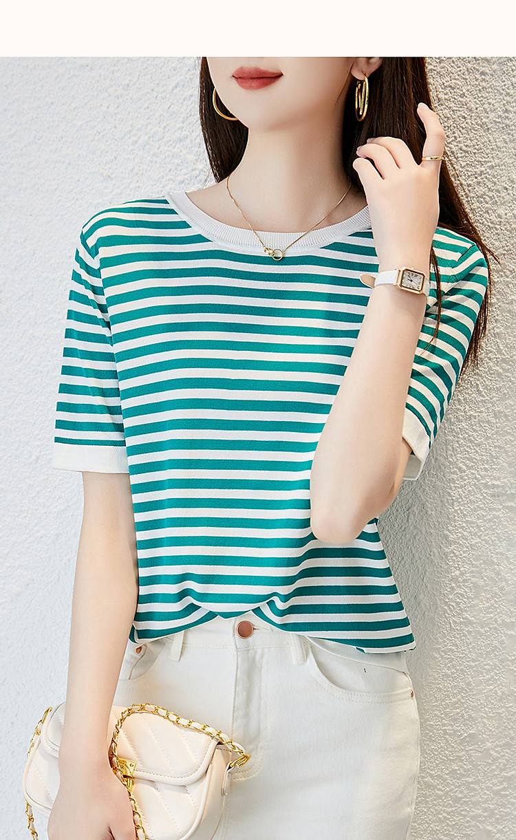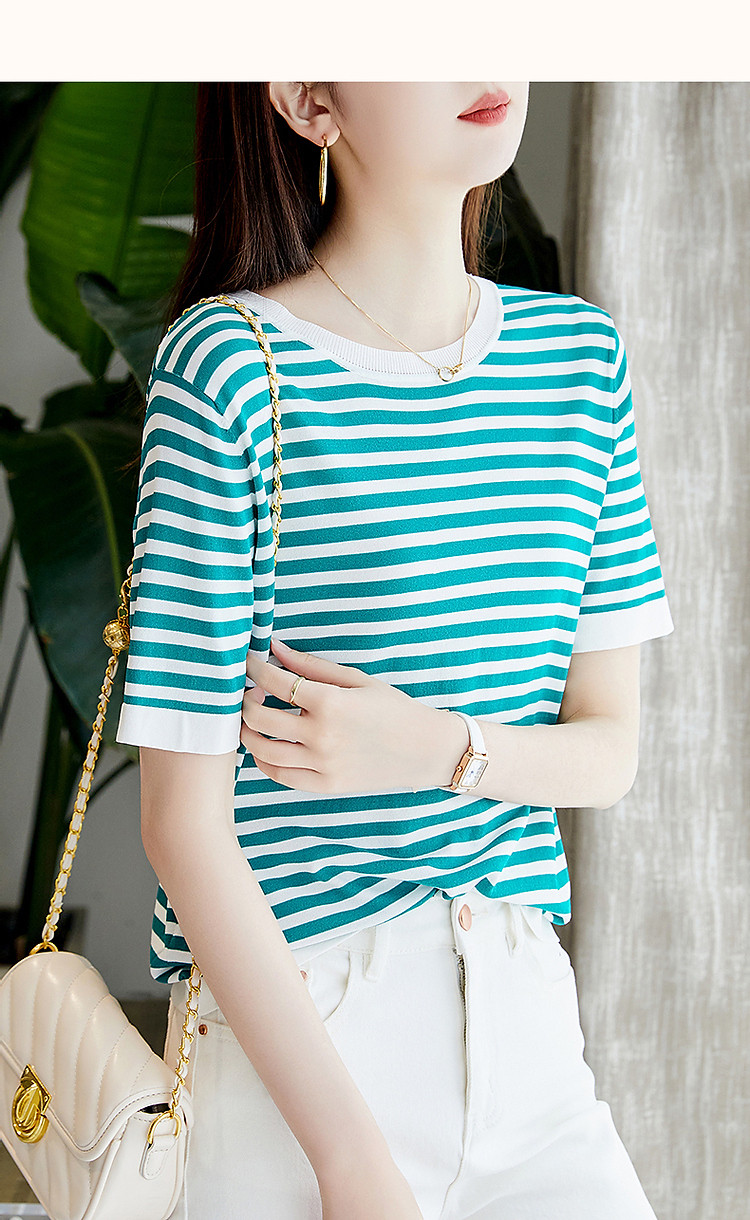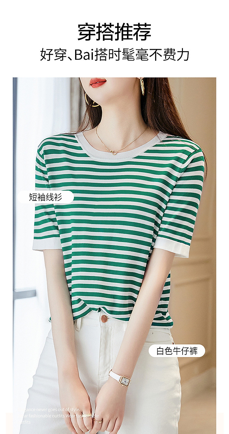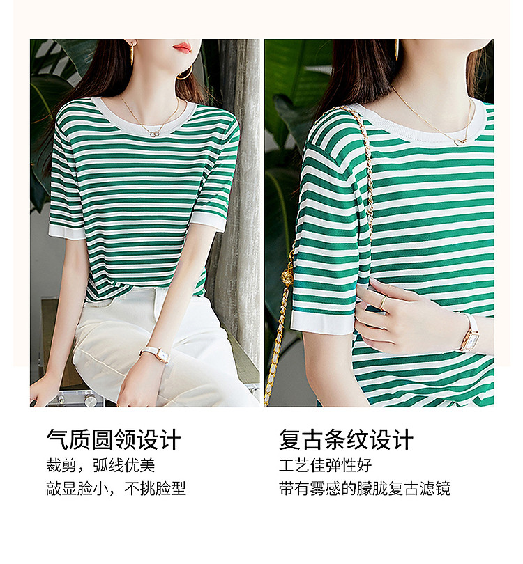 商品名称:【双曲冰麻线衫】夏季款圆领短袖条纹针织衫女上衣 920321