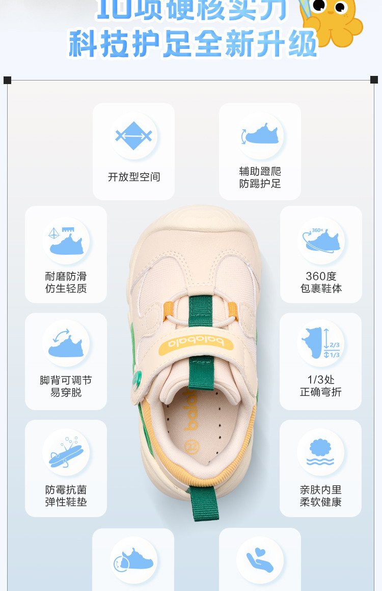 商品名称:小章鱼3.0宝宝学步鞋婴儿鞋子男童鞋女童春秋小白鞋防滑耐磨新 297541