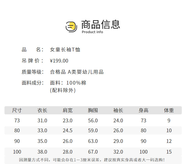 商品名称:春秋婴儿T恤宝宝上衣女童T恤打底衣服纯棉舒适可爱萌趣潮 681797