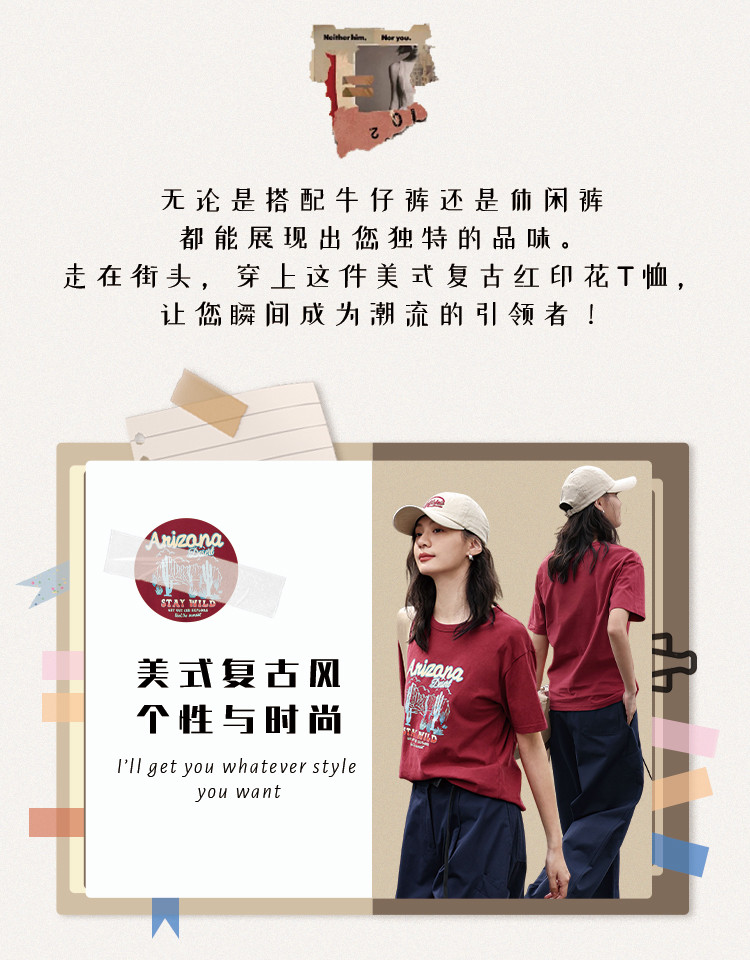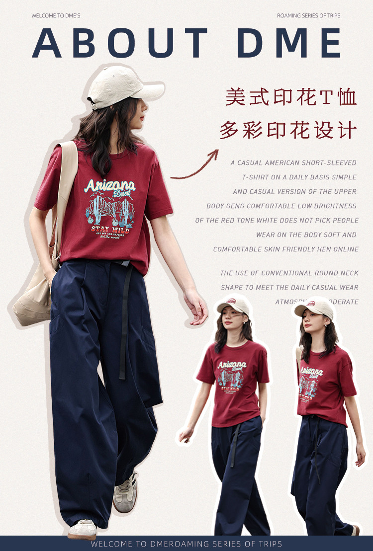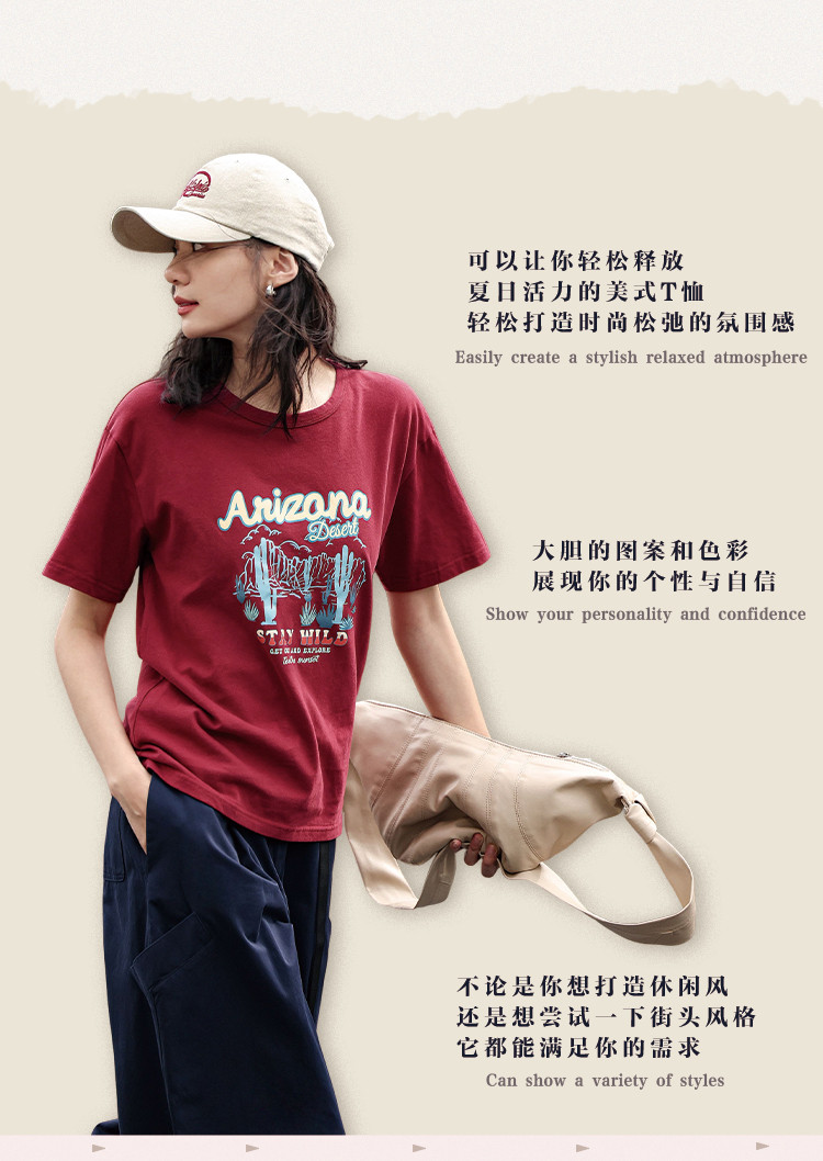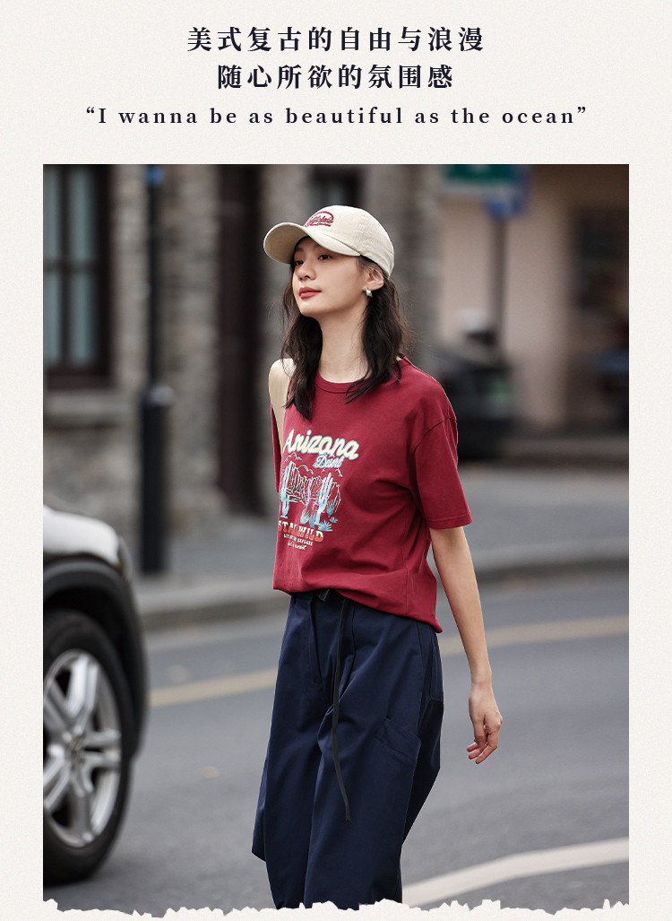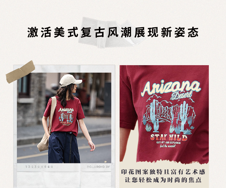 商品名称:【印花休闲短袖】夏复古印花图案小宽松圆领短袖T恤女 695042