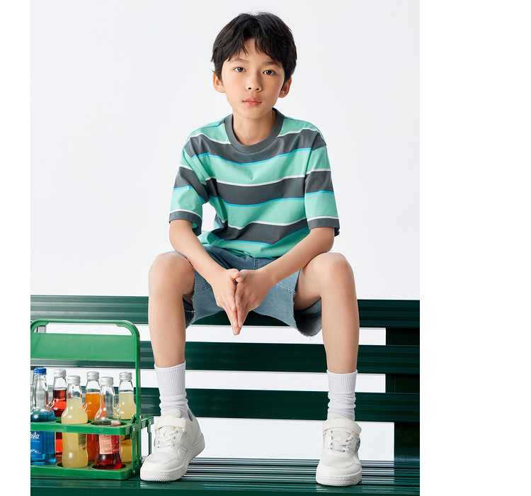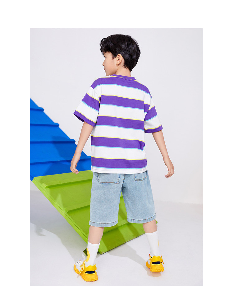亲子款纯棉儿童T恤男童短袖女童夏装宝宝条纹运动打底衫百搭童装 172485