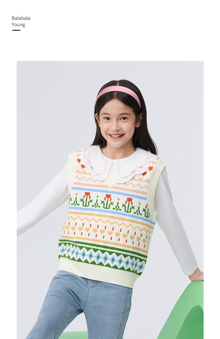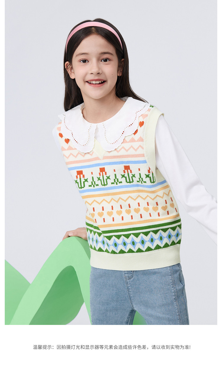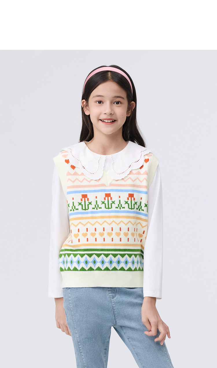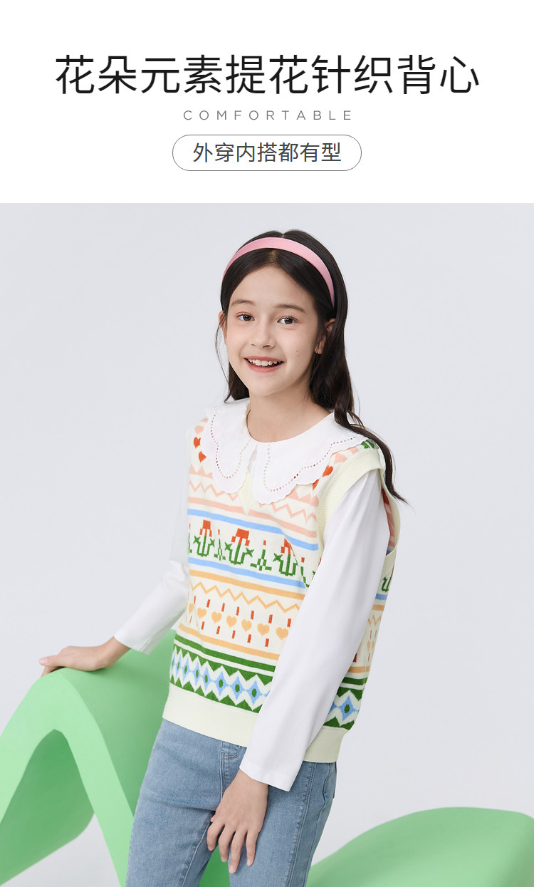 商品名称:艺术感提花儿童马甲女童背心春秋装中大童针织内搭甜美童装上衣 311749