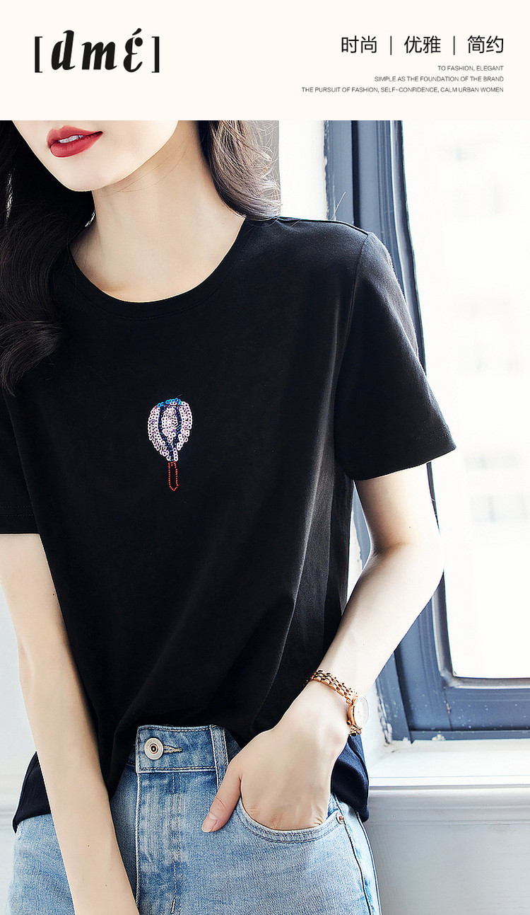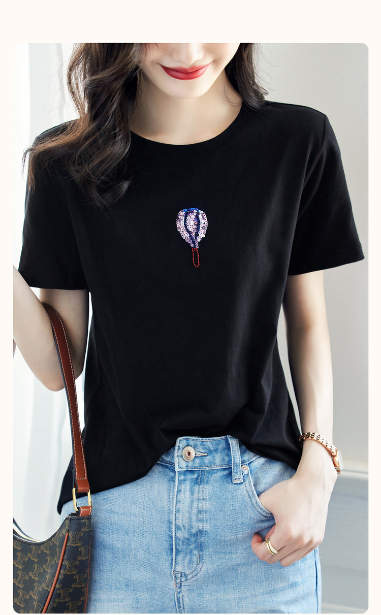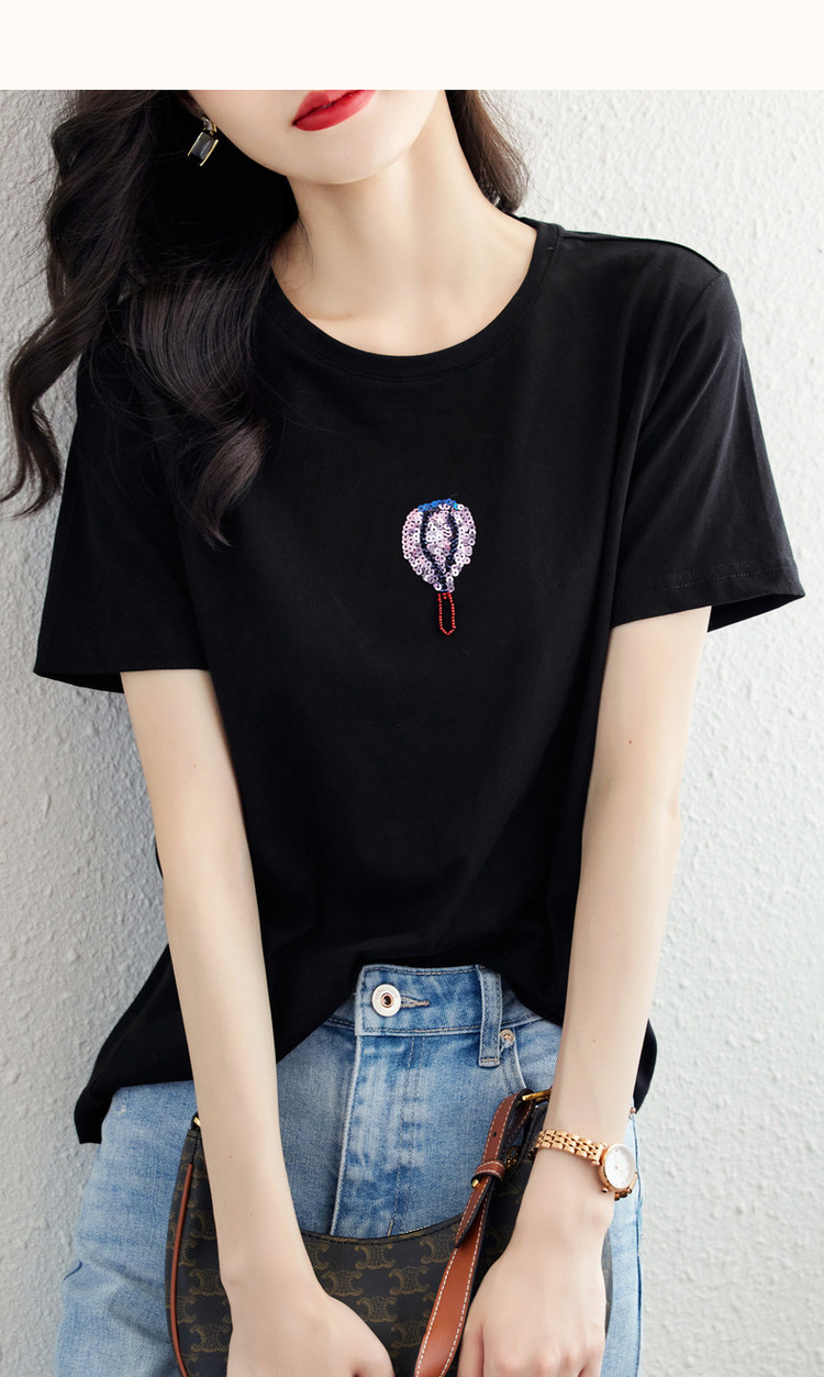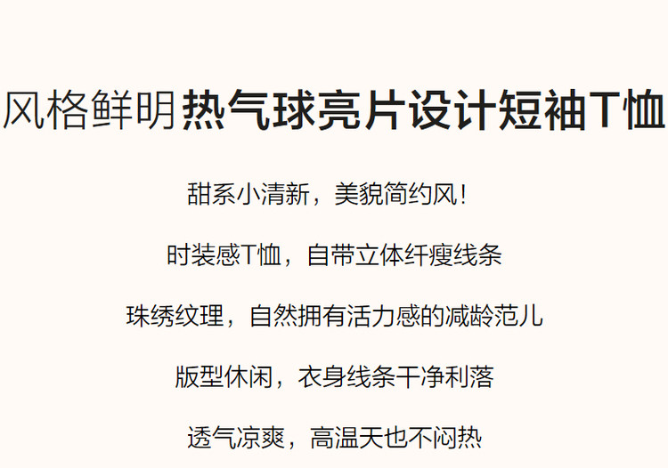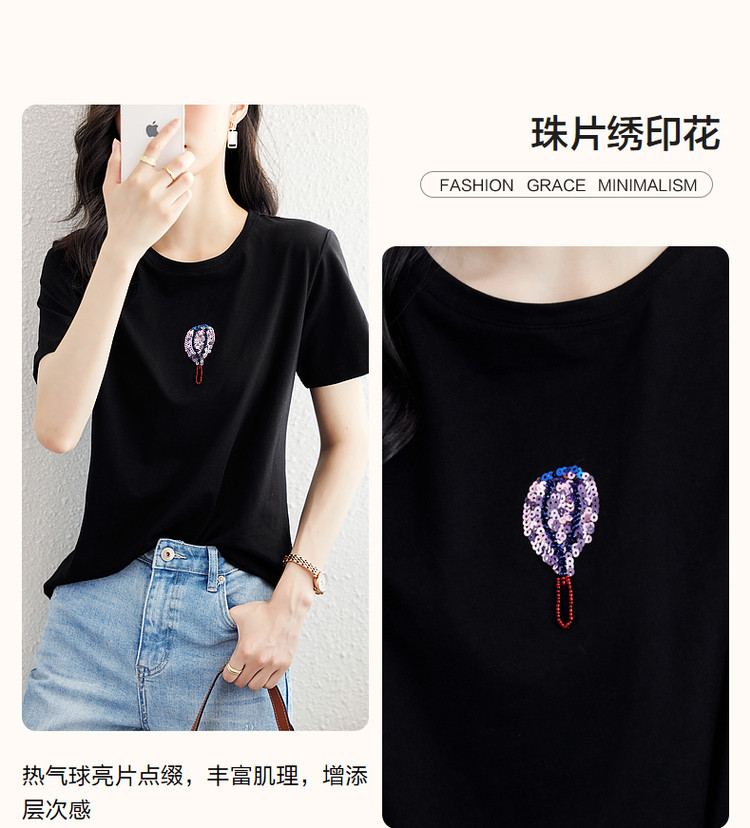 商品名称:【双倍时髦】夏学院风呼吸感纯棉短袖t恤减龄热气球亮片女式t恤 593665