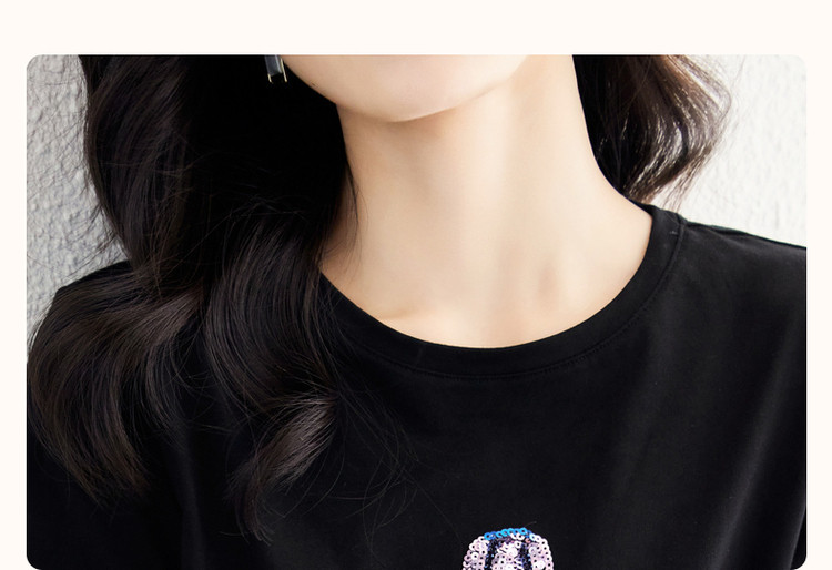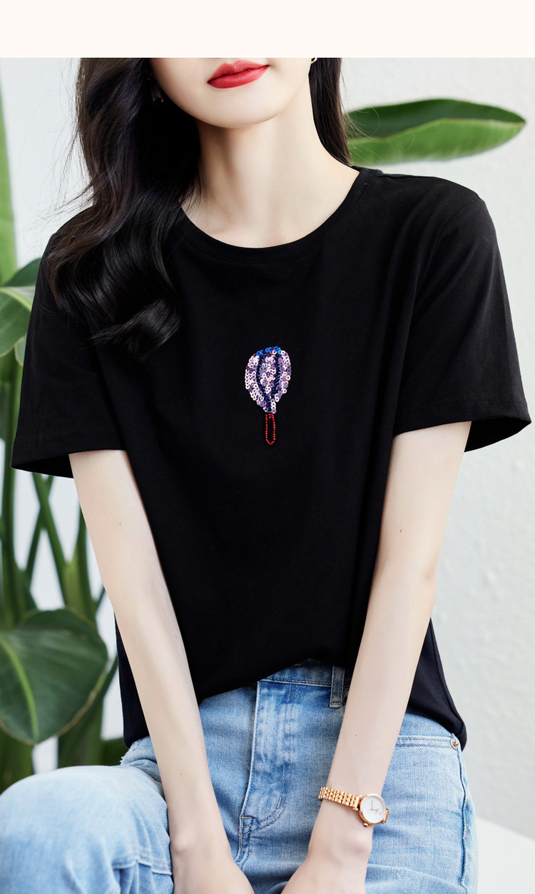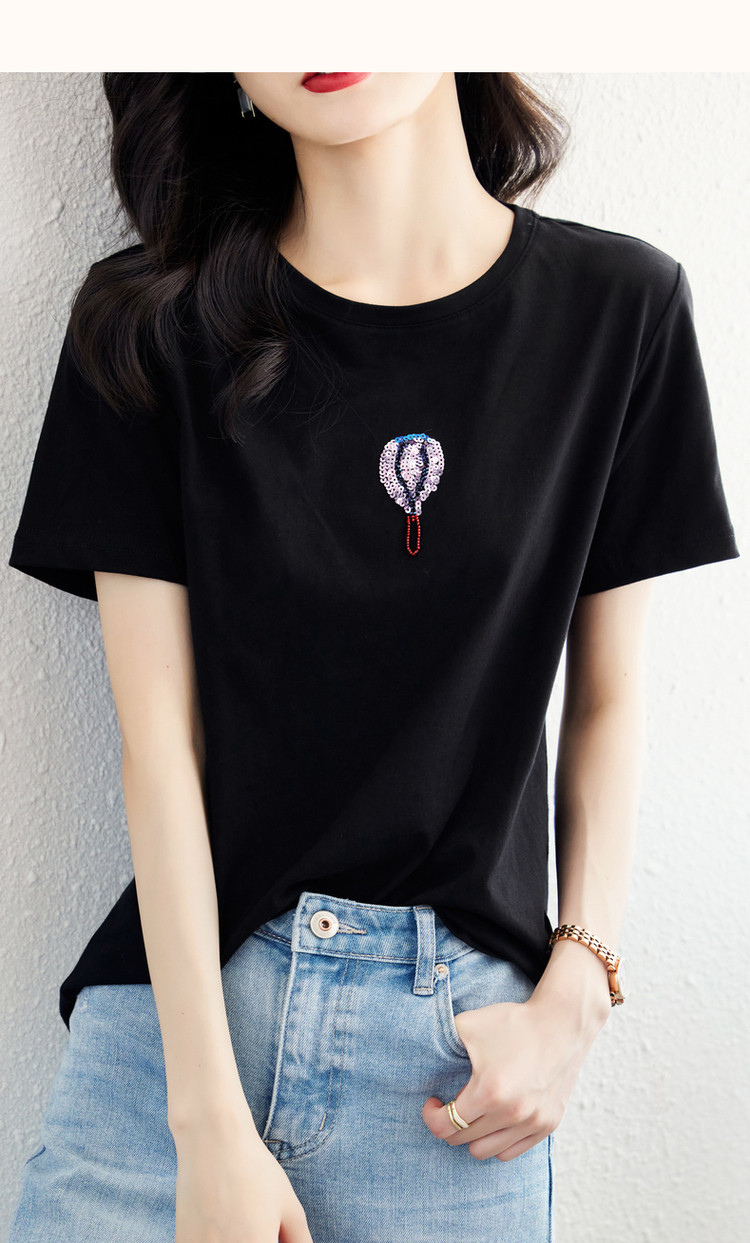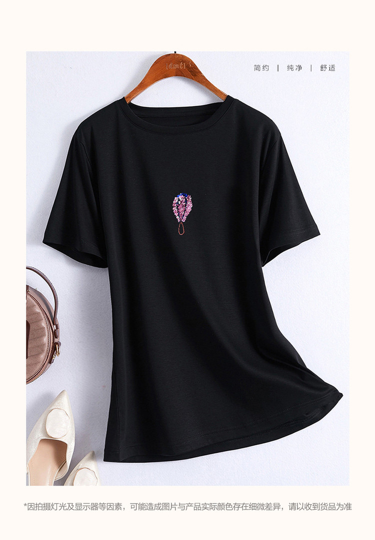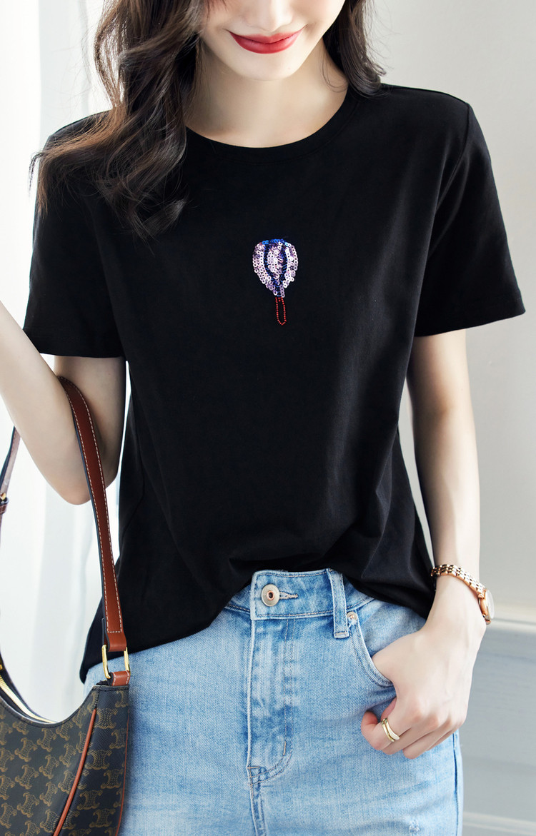 商品名称:【双倍时髦】夏学院风呼吸感纯棉短袖t恤减龄热气球亮片女式t恤 593665