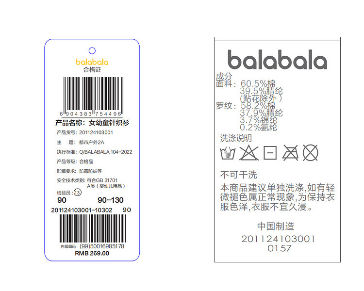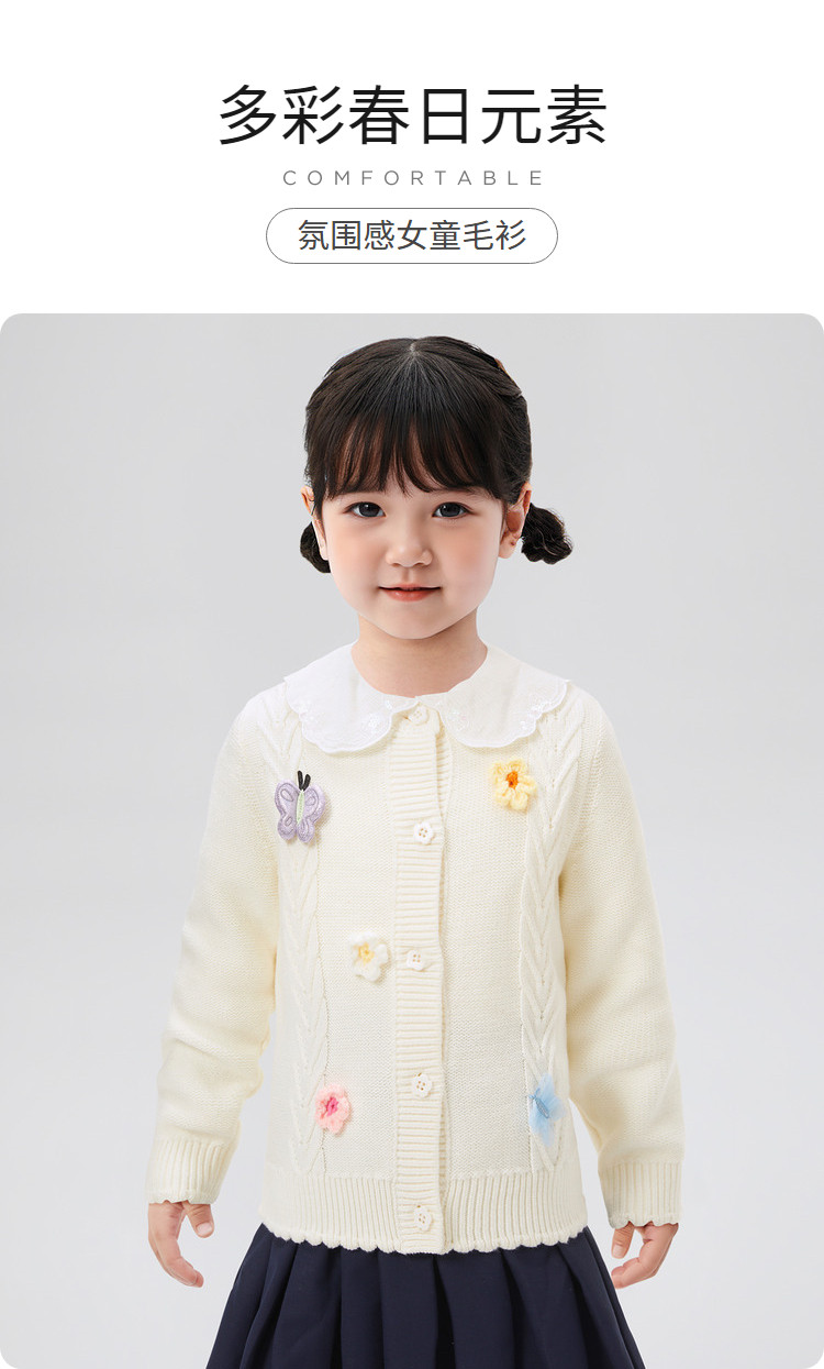 商品名称:巴拉巴拉女童毛衣宽松V领针织衫春清新校园风开衫 762629