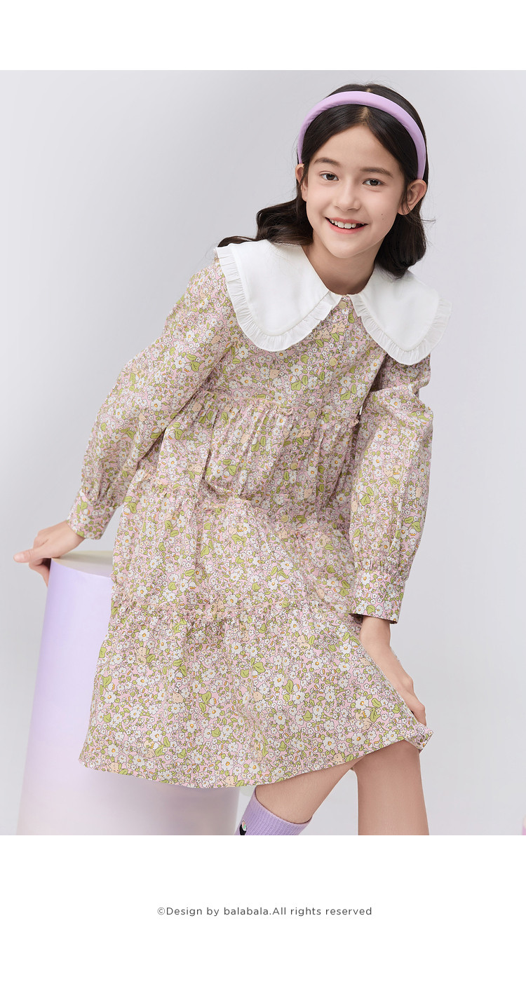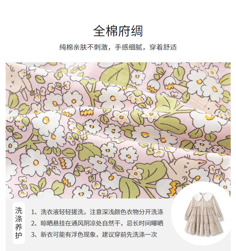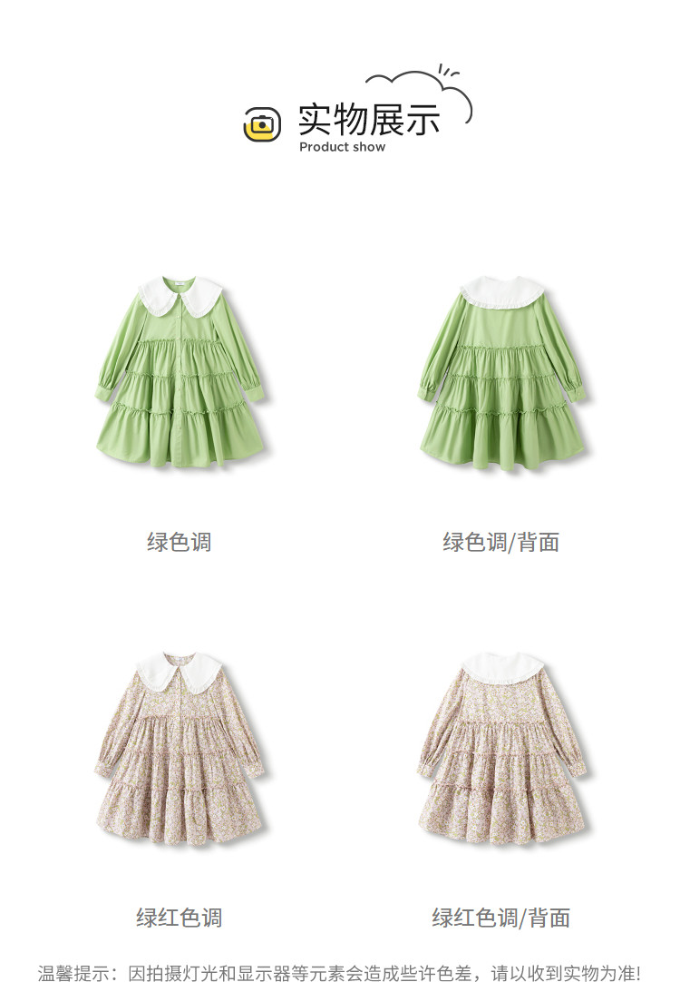 商品名称:纯棉连衣裙儿童公主裙春秋装学院童装女童A字大裙摆大童文艺国风 380421