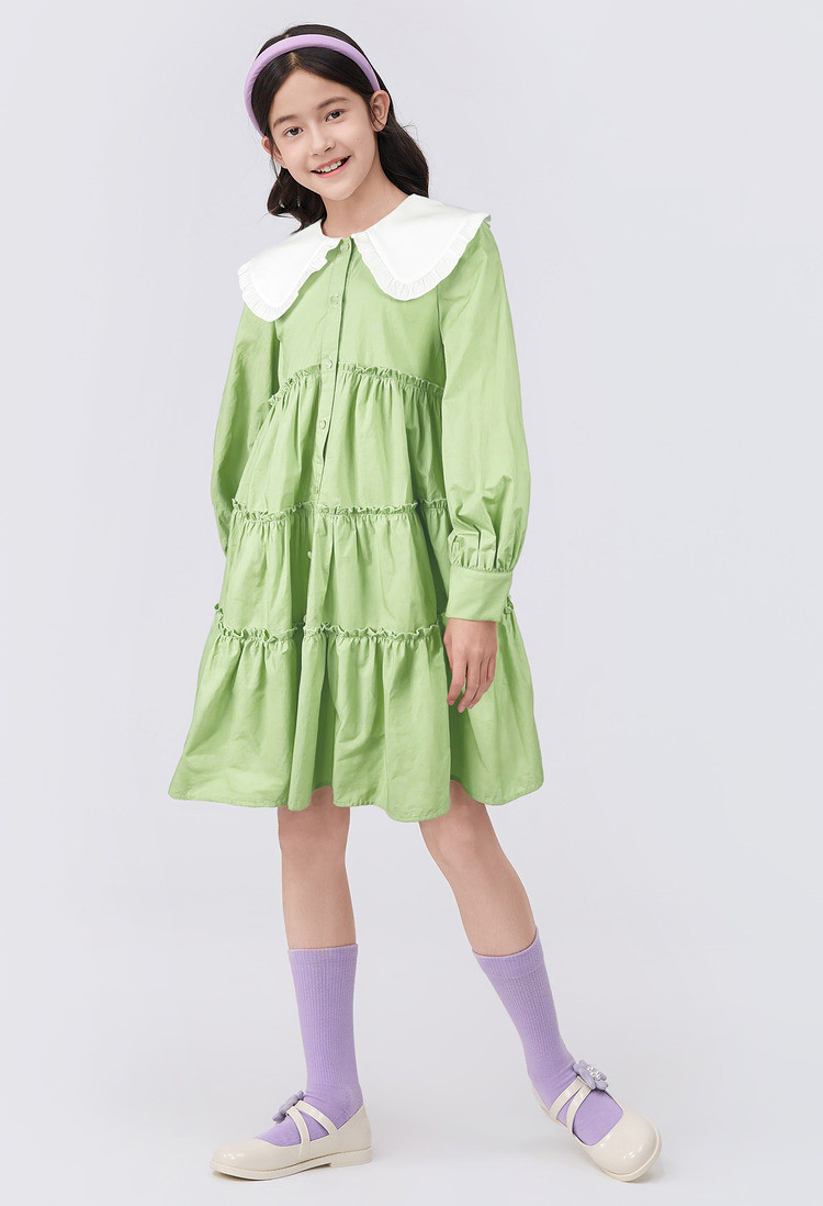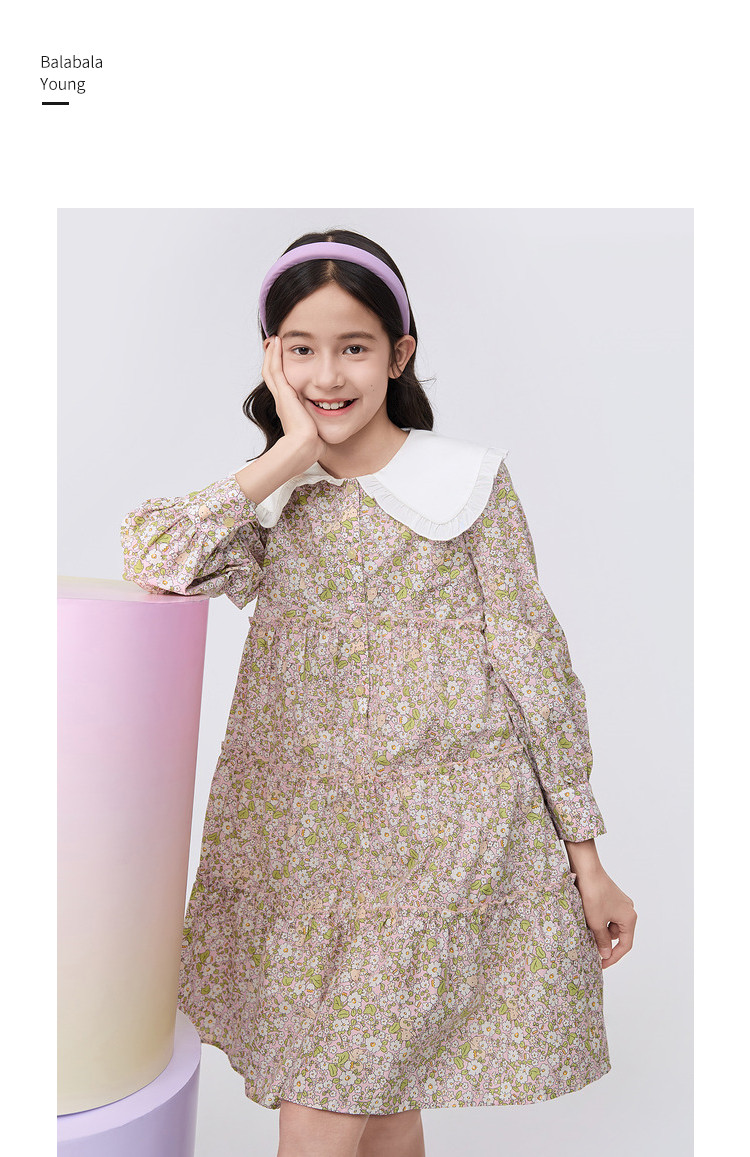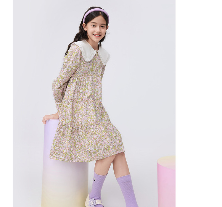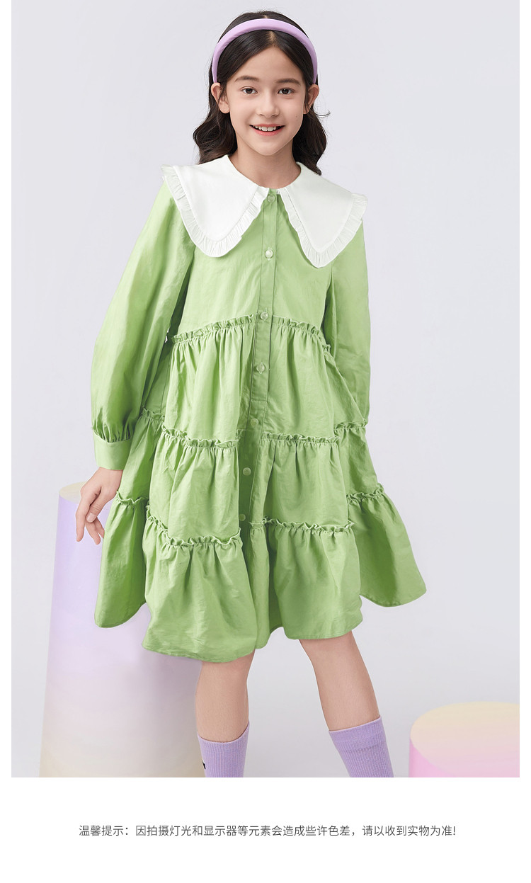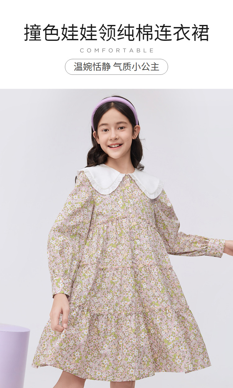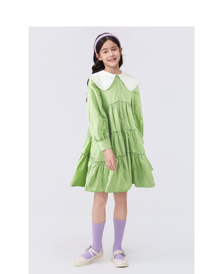 纯棉连衣裙儿童公主裙春秋装学院童装女童A字大裙摆大童文艺国风 380421