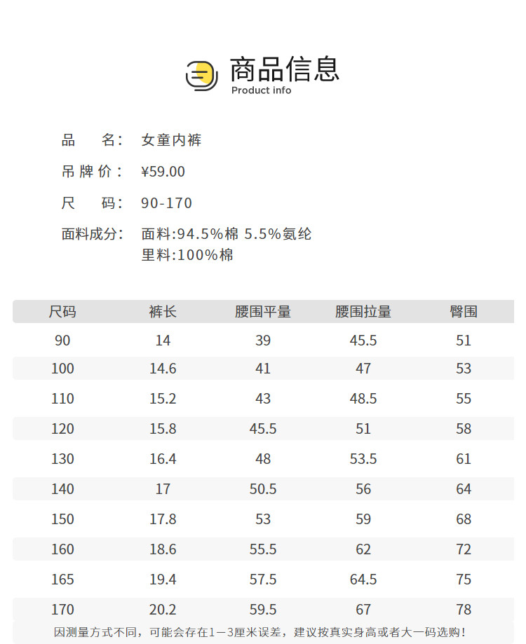 | 尺码 | 身高(cm) | 腰围(cm) | 裤长(cm) | 臀围(cm) | 适合年龄 | 号型 |
