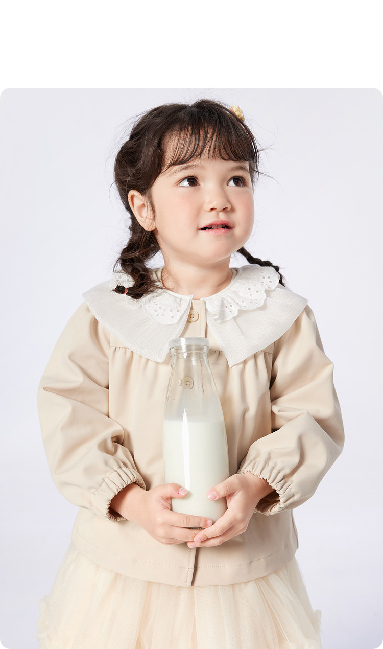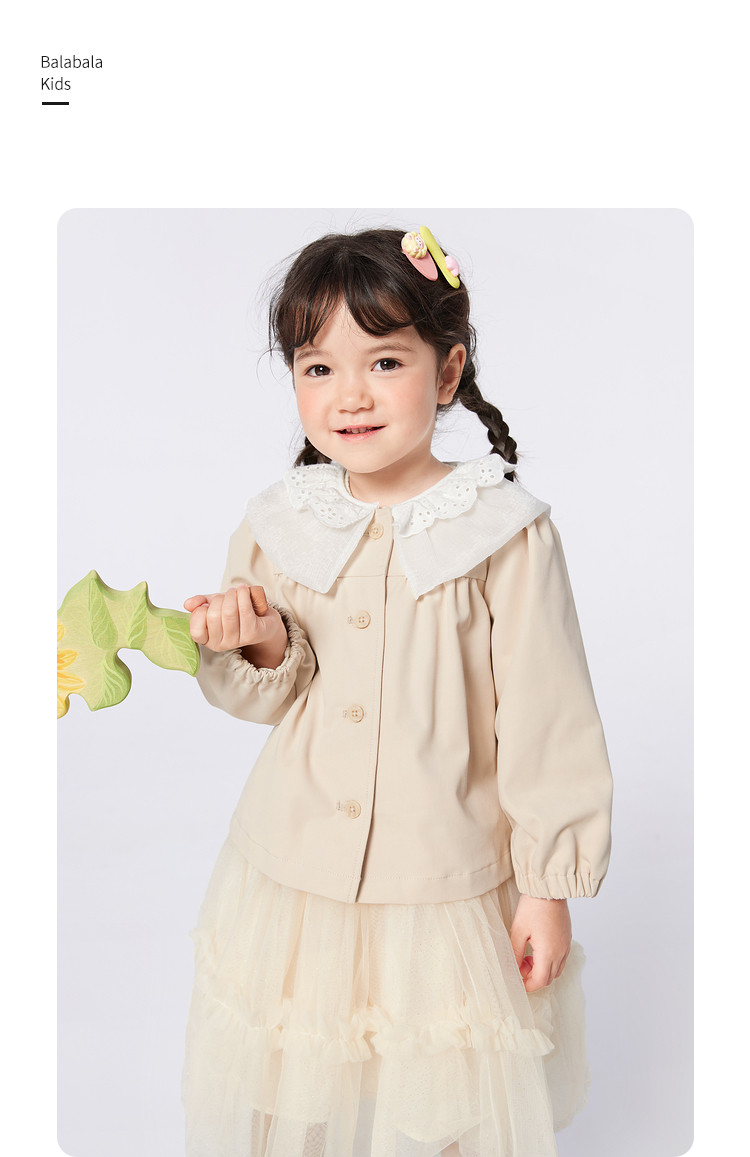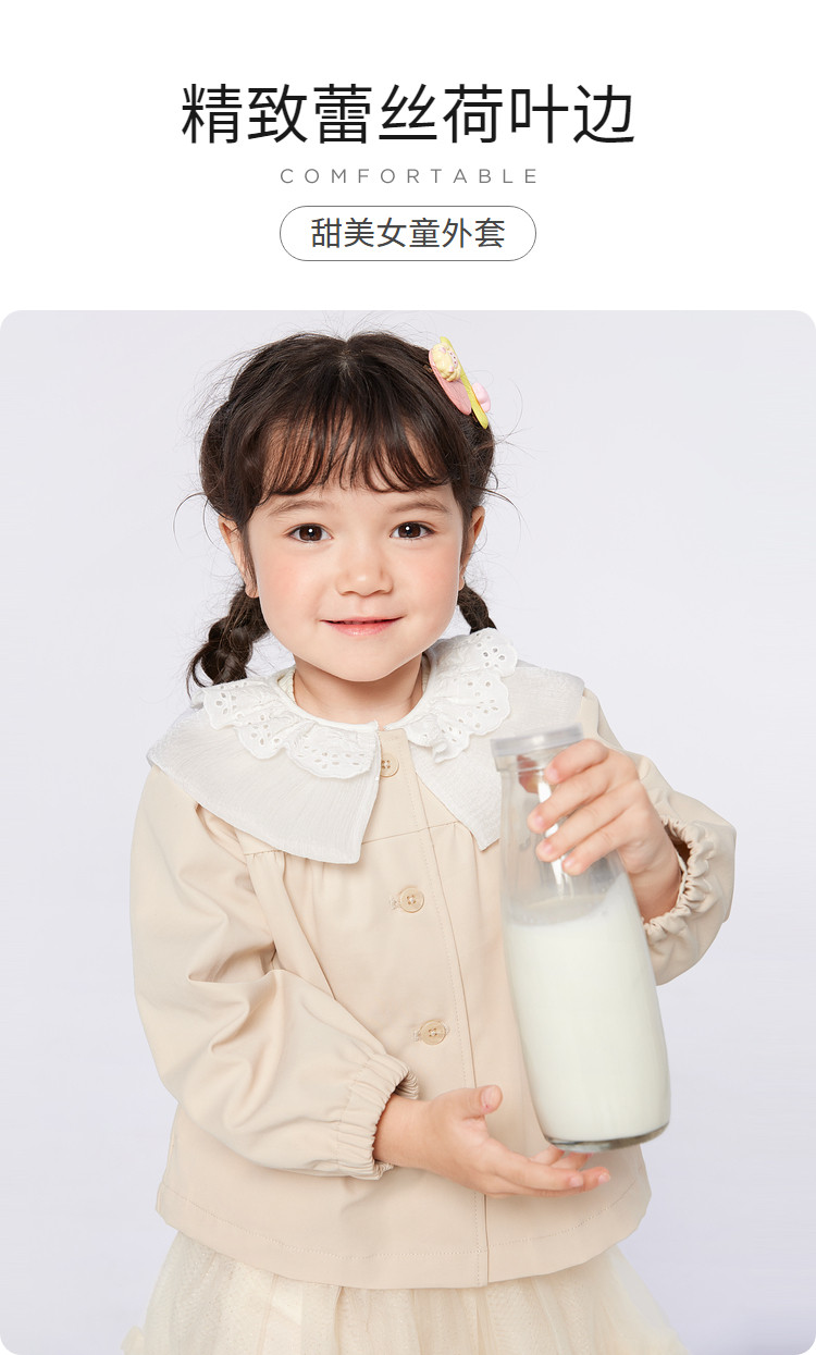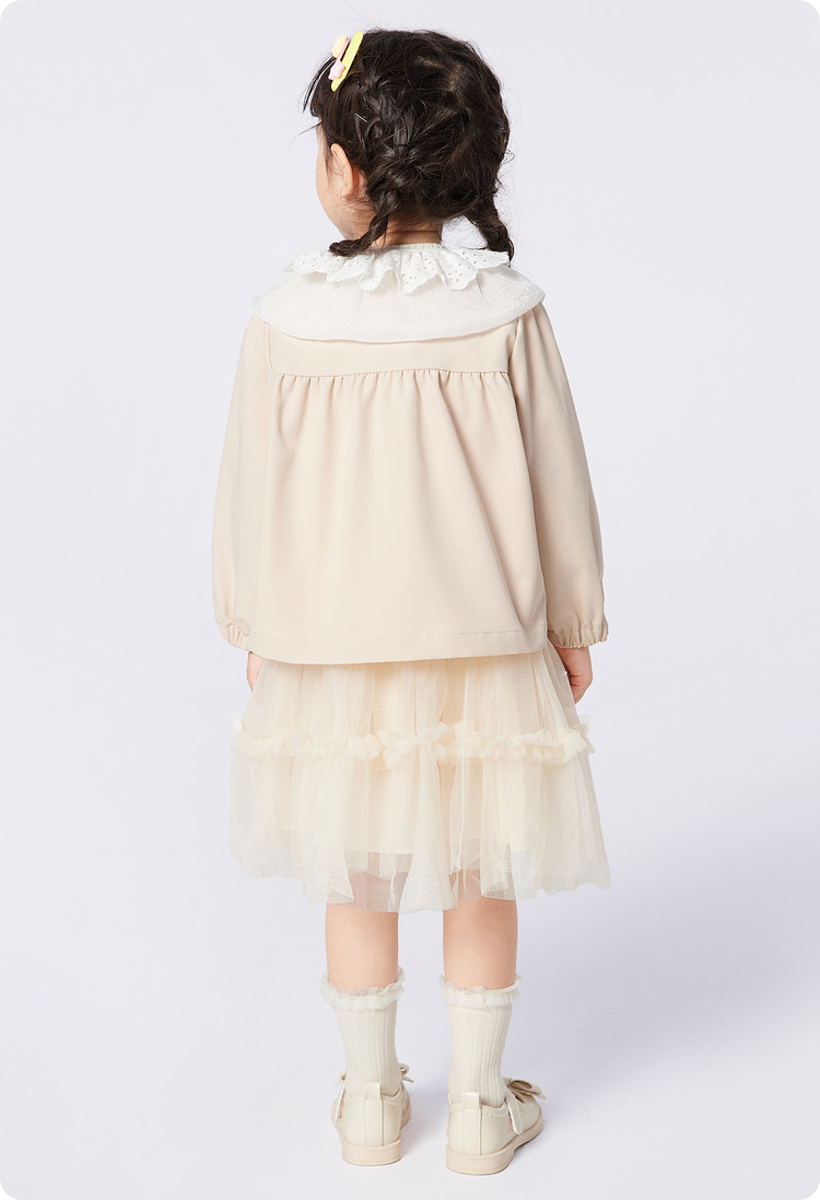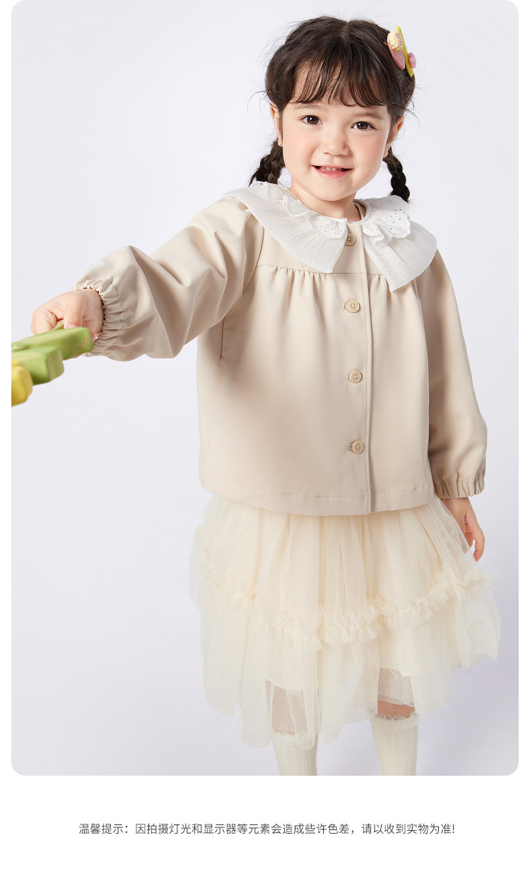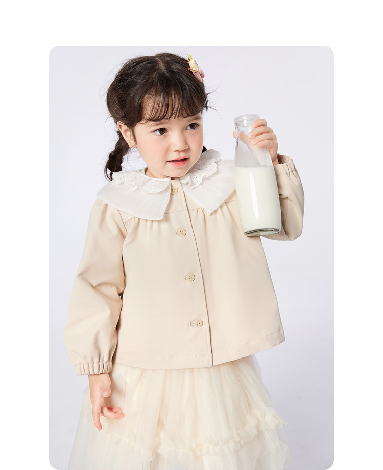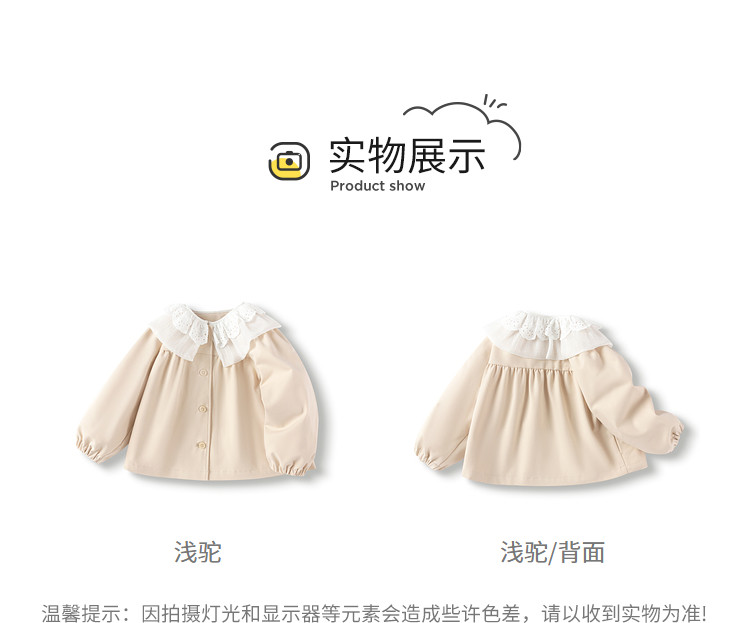 商品名称:翻领文艺范儿童外套女童春秋装甜美蕾丝边设计长袖上衣可爱时尚 562949