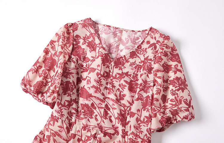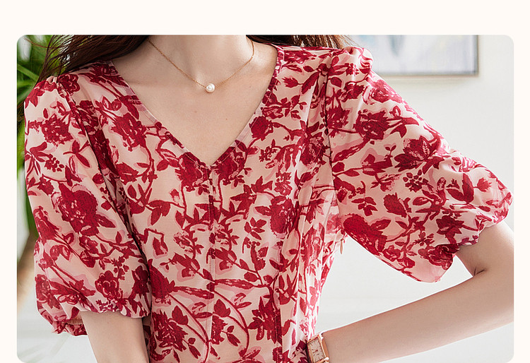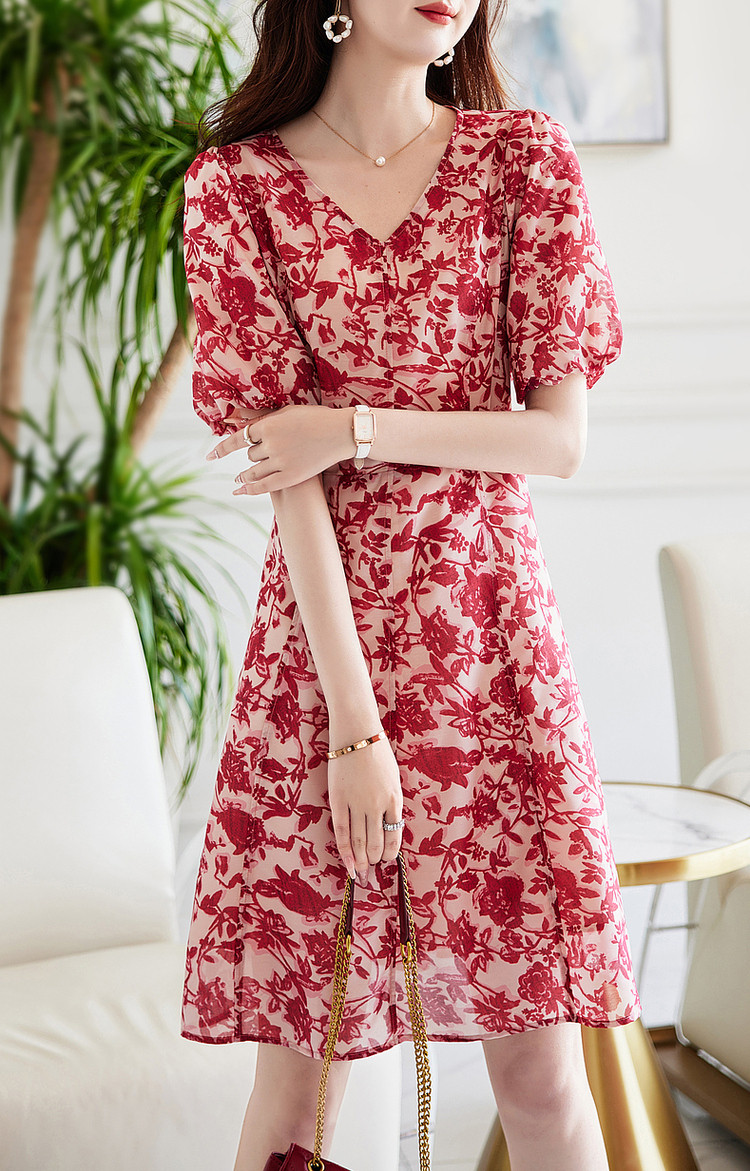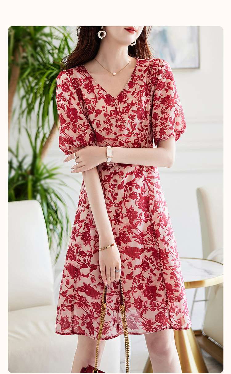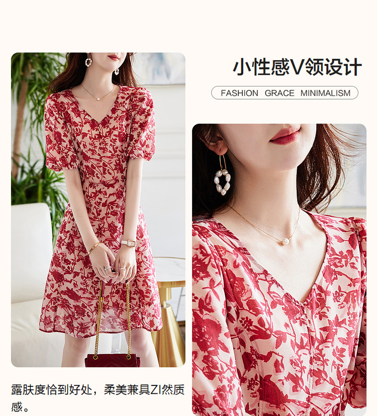 商品名称:【名媛风伞裙】夏季v领收腰灯笼袖连衣裙女中长款 072897
