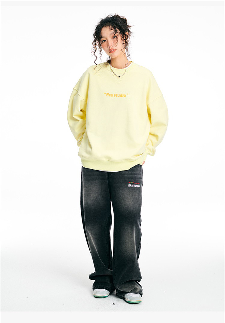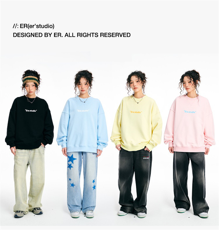 春秋季撞色字母圆领卫衣休闲上衣潮牌情侣装美式宽松男女同款 850263