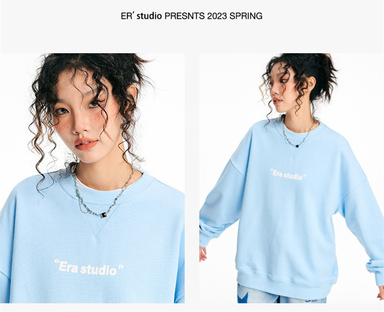 商品名称:春秋季撞色字母圆领卫衣休闲上衣潮牌情侣装美式宽松男女同款 850263