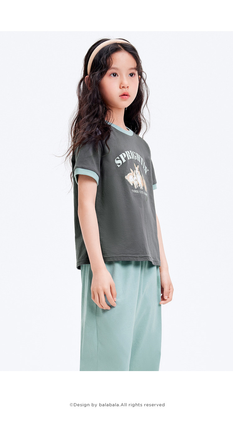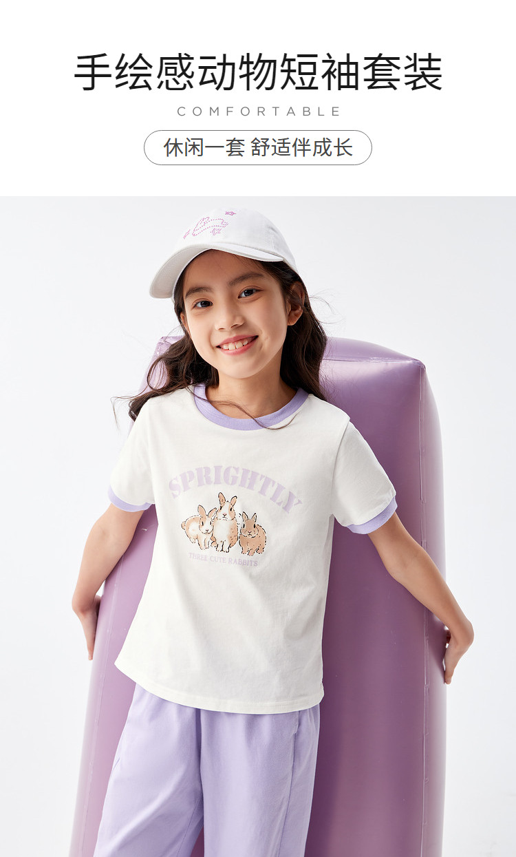 透气舒适女童夏季套装洋气时尚款短袖长裤两件套薄大童运动训练服 736837