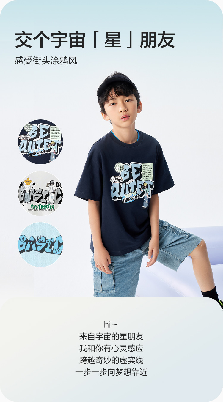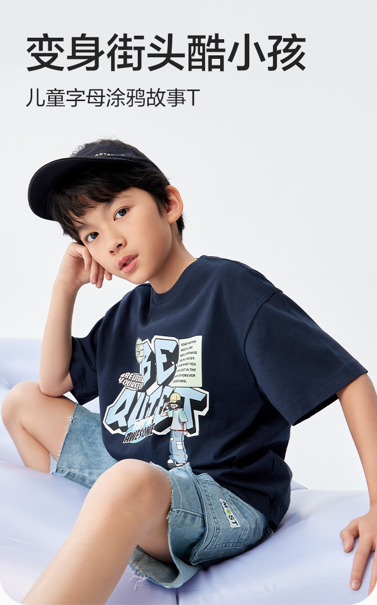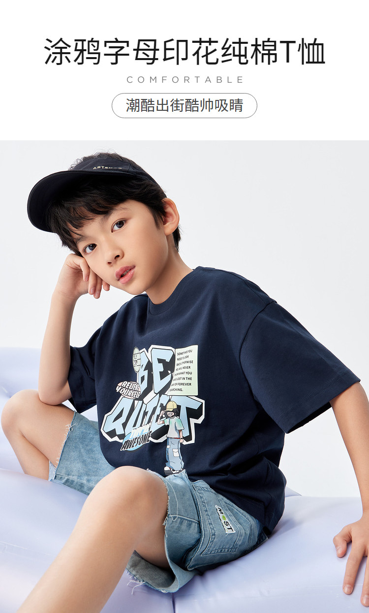 商品名称:涂鸦字母儿童t恤男童短袖纯棉夏装大童运动亲子上衣 424709