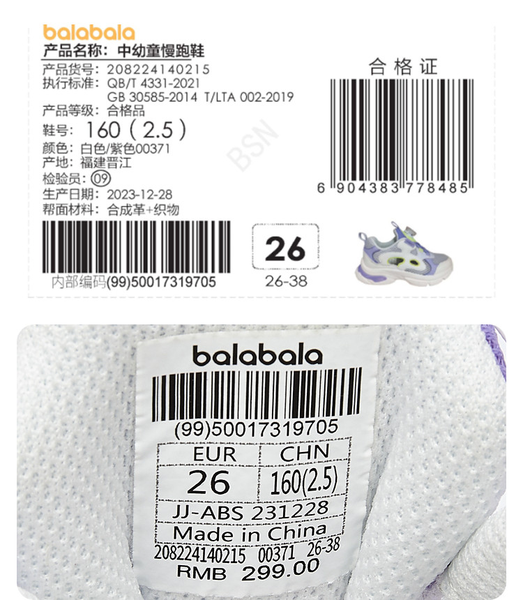 尺码 欧洲码 脚长(mm) 鞋内长(mm)