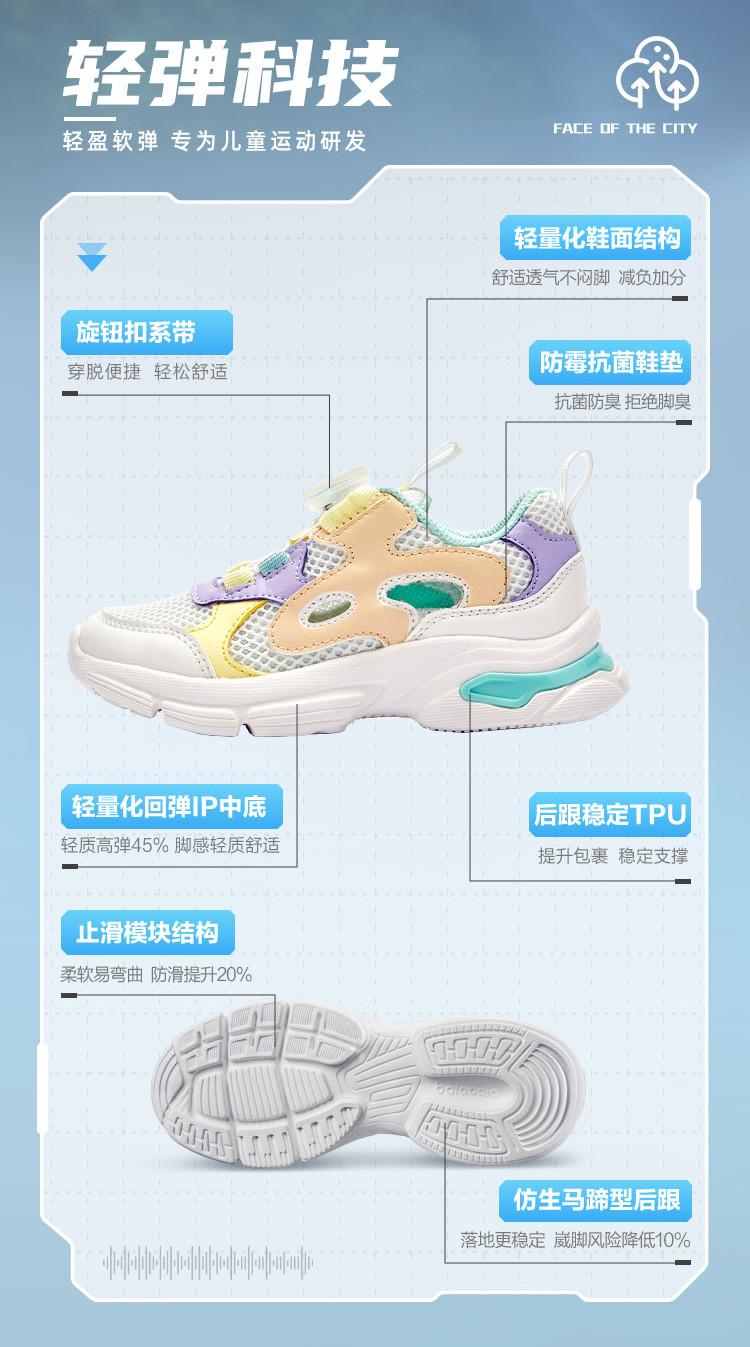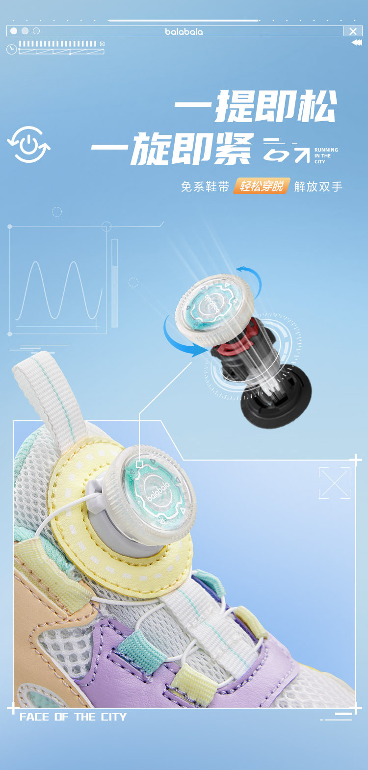 商品名称:旋转扣设计透气轻便儿童运动鞋春秋网面男童鞋跑步鞋女童运动 883589