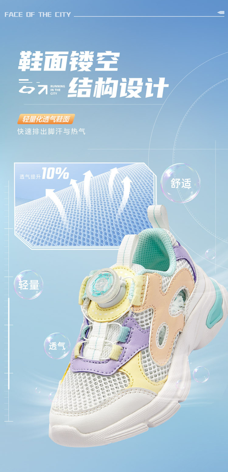 旋转扣设计透气轻便儿童运动鞋春秋网面男童鞋跑步鞋女童运动 883589