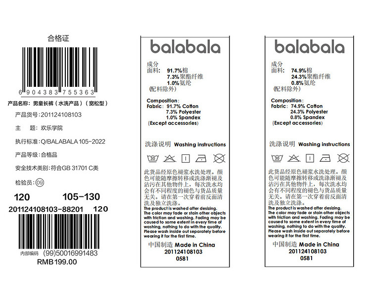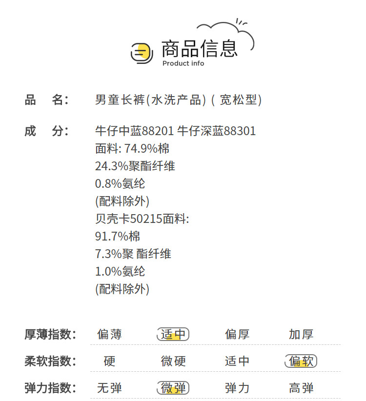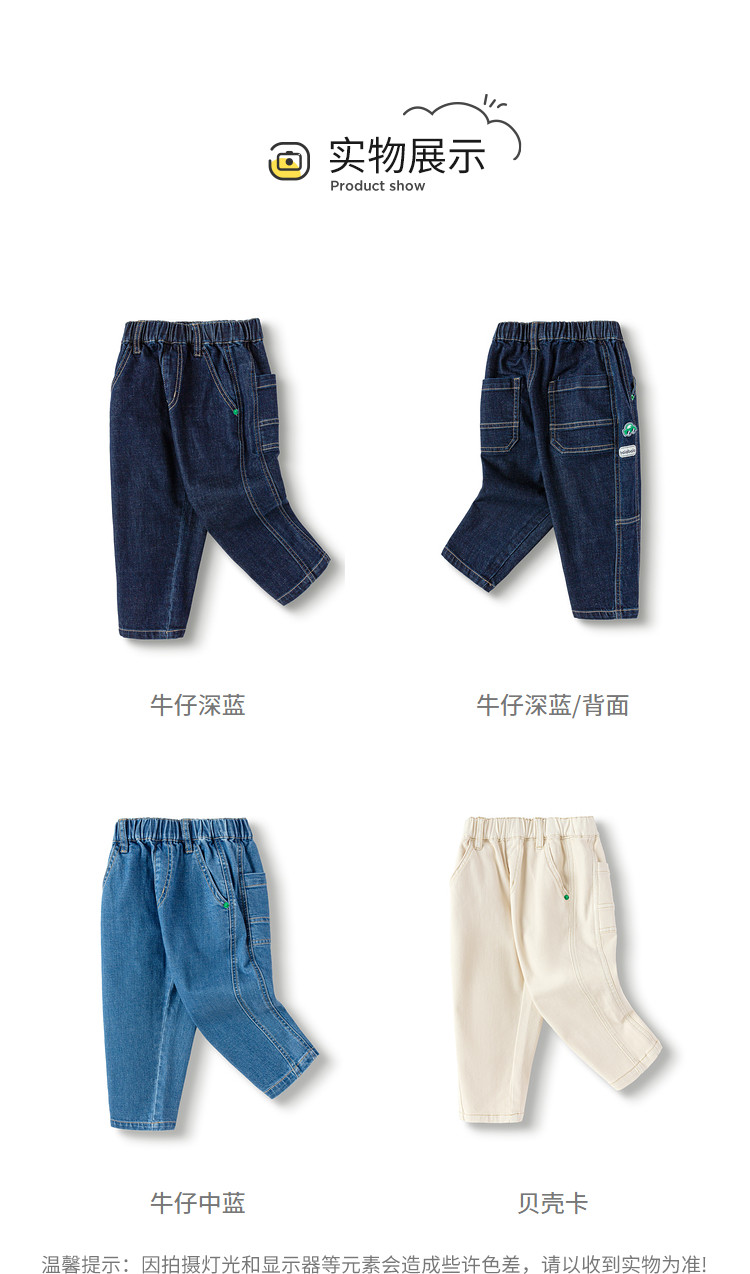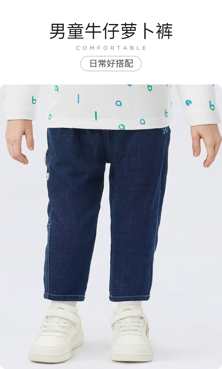 商品名称:男童裤子牛仔裤春秋时尚儿童长裤经典宽松萝卜裤 437509