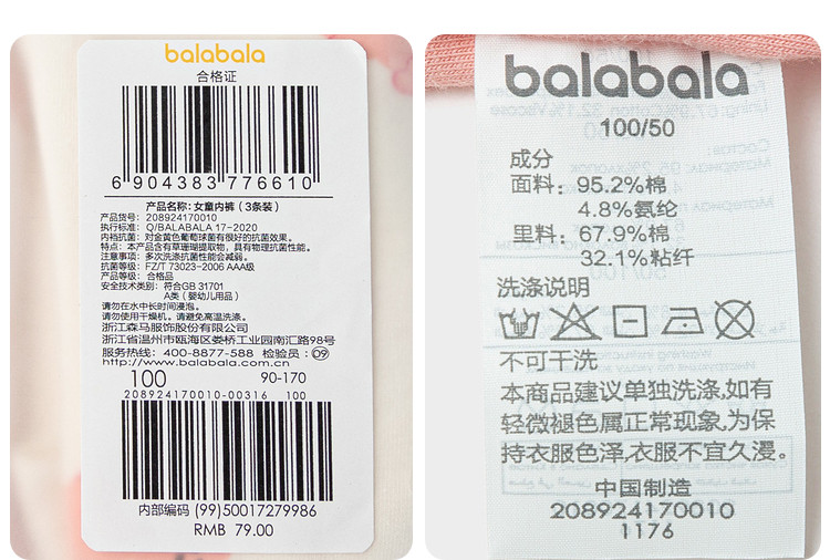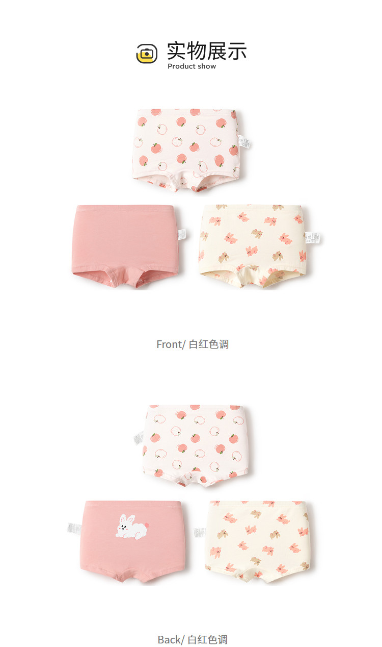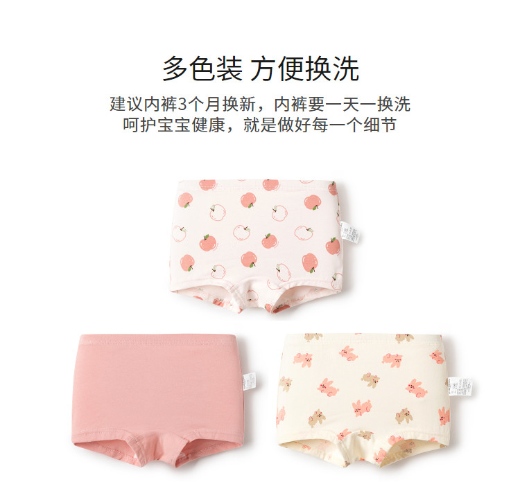 商品名称:A类抑菌裆底女童内裤儿童三四角裤成长期不夹PP透气三条装短裤 896709