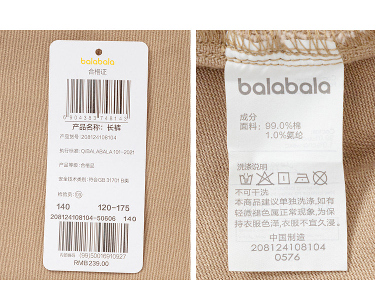 商品名称:男童裤子儿童休闲裤春秋装中大童长裤宽松舒适防蚊裤 752517