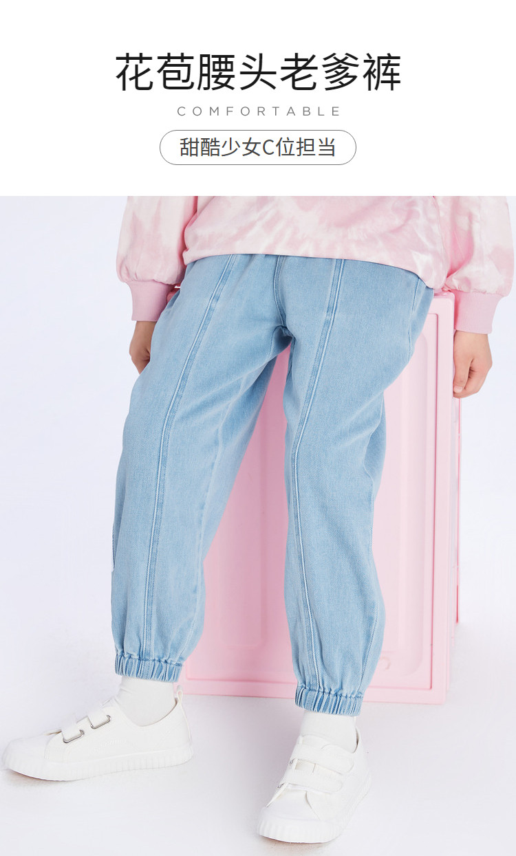 商品名称:宽松老爹裤女童裤子儿童牛仔裤春秋中大童设计感长裤 745925