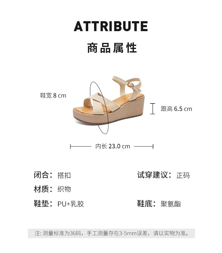 商品名称:【气质厚底】坡跟沙滩凉鞋一字带女凉鞋女夏季厚底百搭凉鞋女鞋子 333952