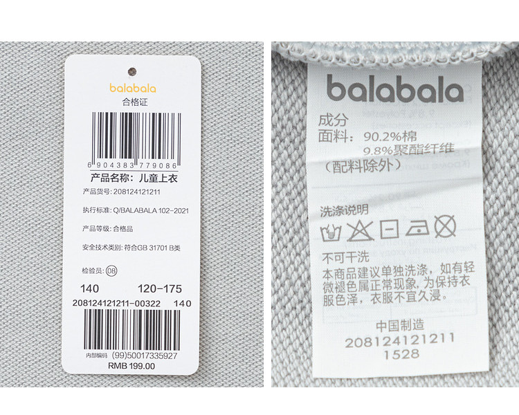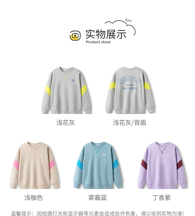 商品名称:拼接撞色套头卫衣儿童长袖春秋装男童女童上衣中大童 821829