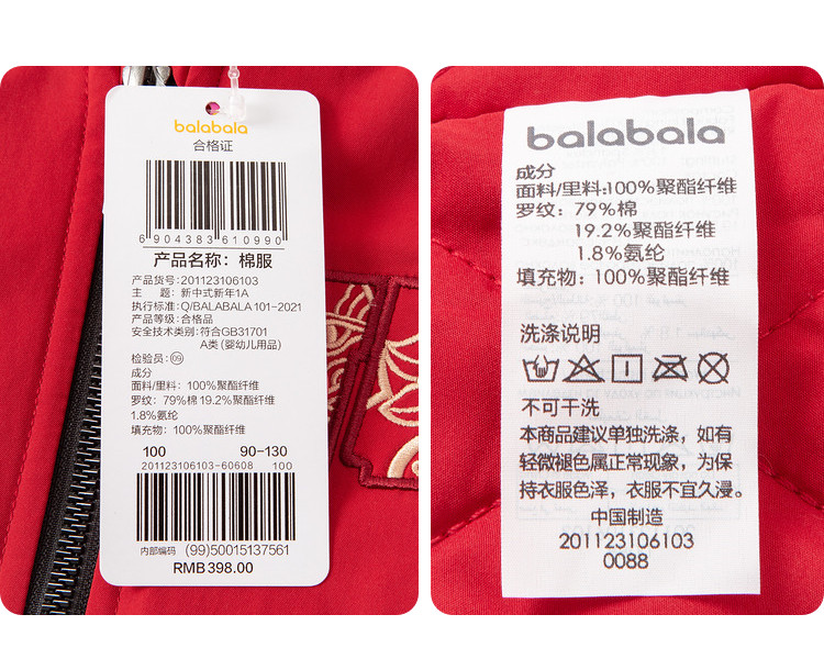 商品名称:【国潮棒球服】童装儿童棉服男童外套撞色春秋精致小童宝宝上衣 547845