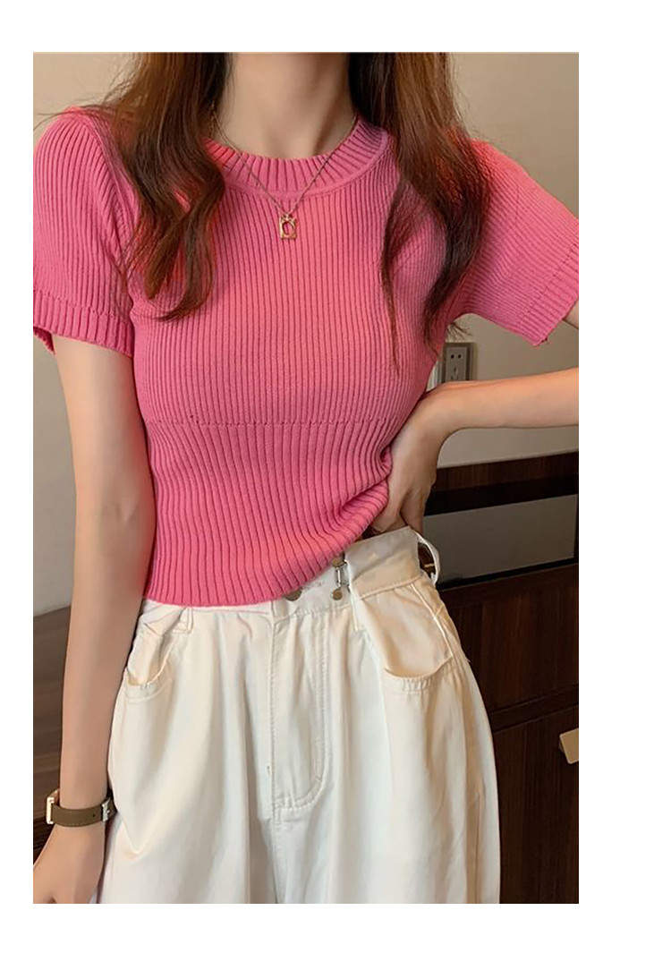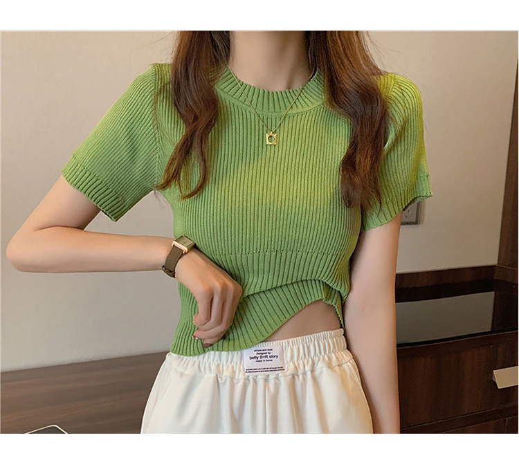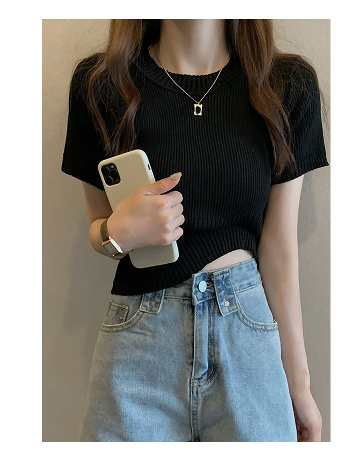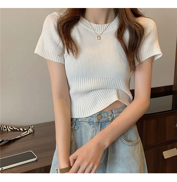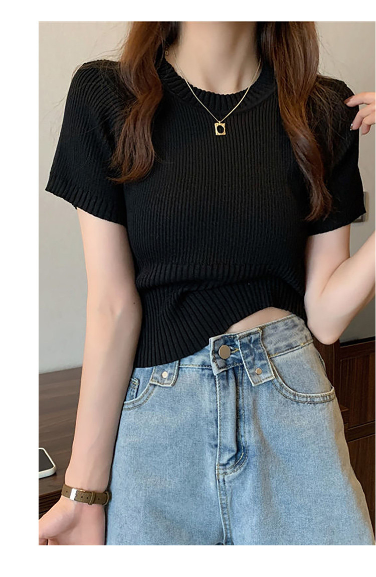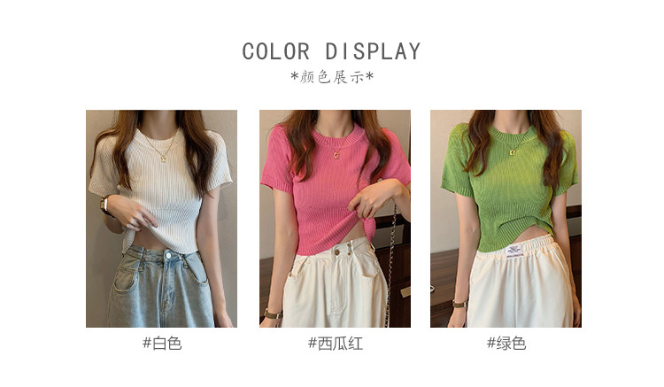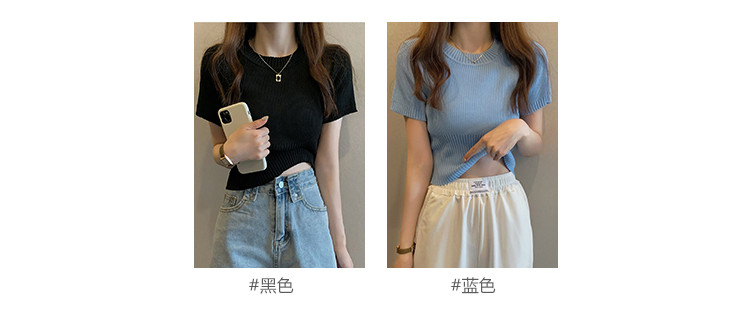 商品名称:圆领短袖针织衫女百搭休闲短款显瘦针织t恤女上衣 763651