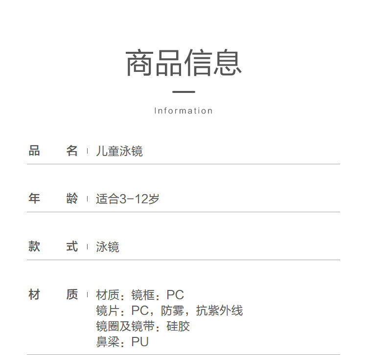 商品名称:儿童眼镜男童女童泳具泳镜防水防雾抗紫外线时尚柔软简约时尚精致 433797