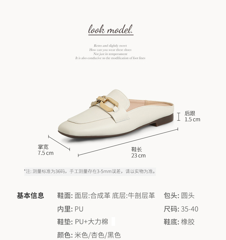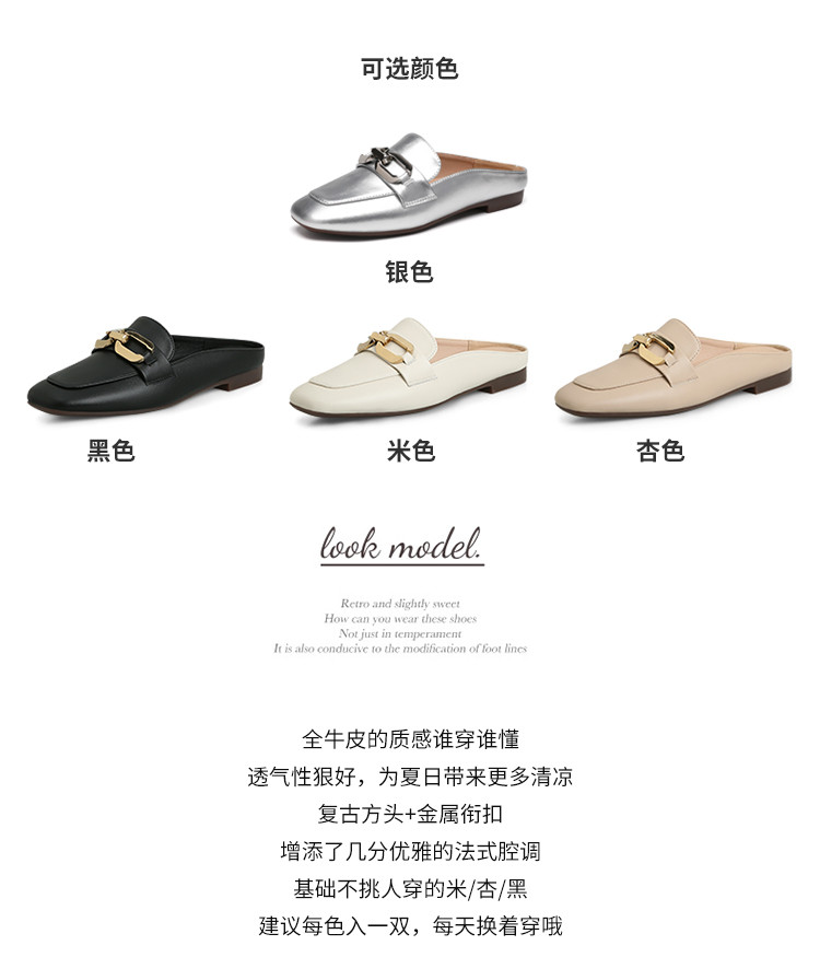 商品名称:【牛剖层革】平底凉鞋女士穆勒鞋女半拖鞋女夏季凉拖鞋一脚蹬女鞋 552960