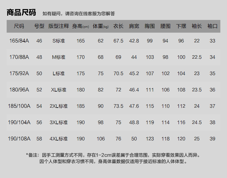 | 尺码 | 衣长(cm) | 肩宽(cm) | 腰围(cm) | 袖长(cm) | 胸围(cm) | 下摆围(cm) | 号型 |