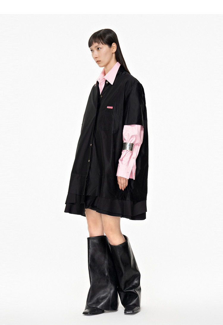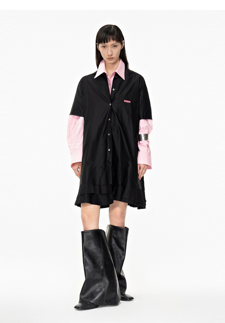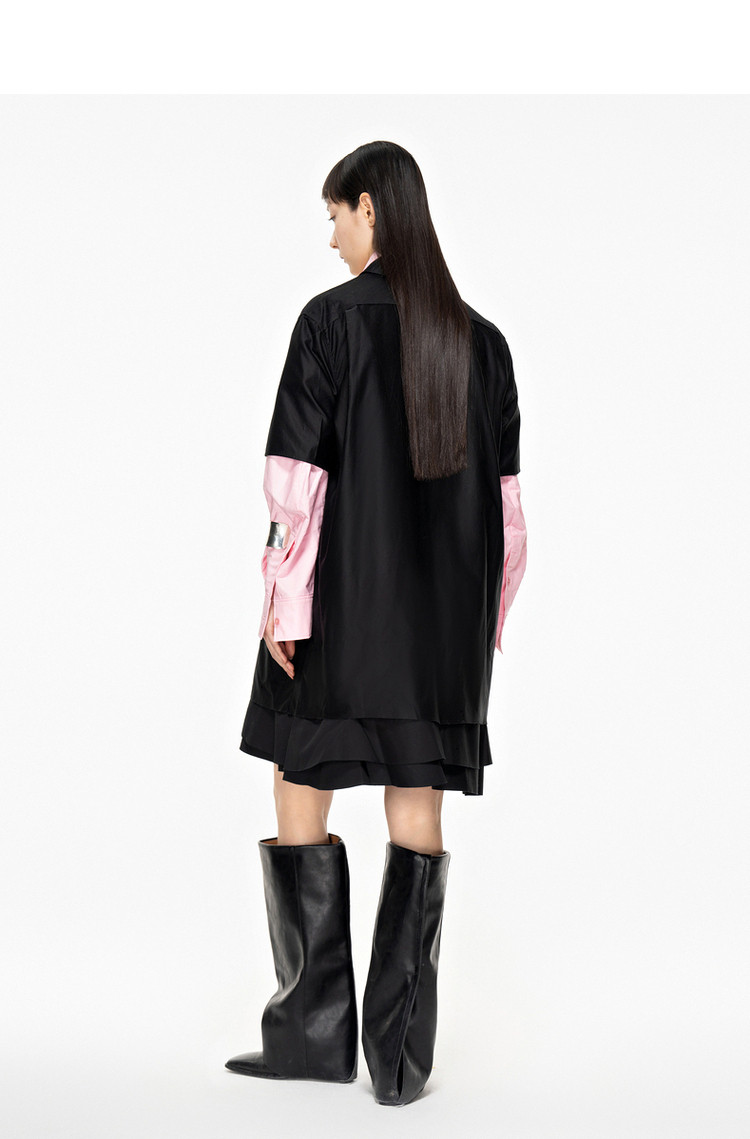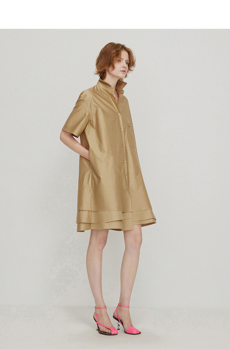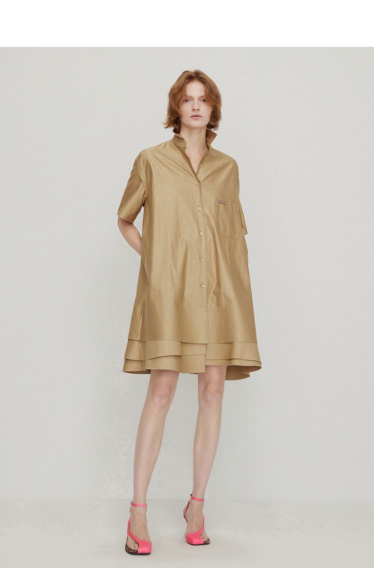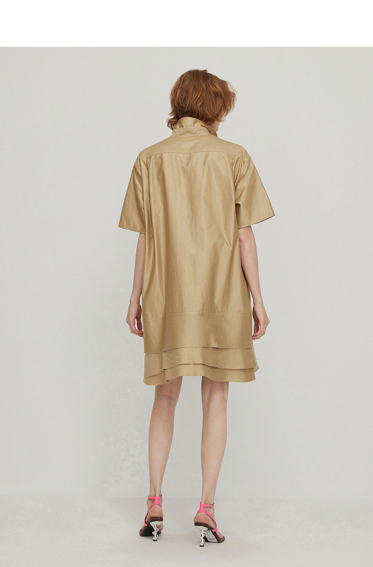 夏连衣裙A型休闲纯色拼接衬衫领女短裙 043147