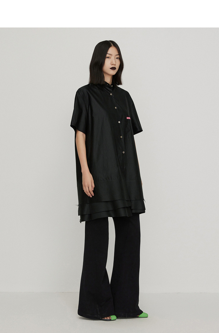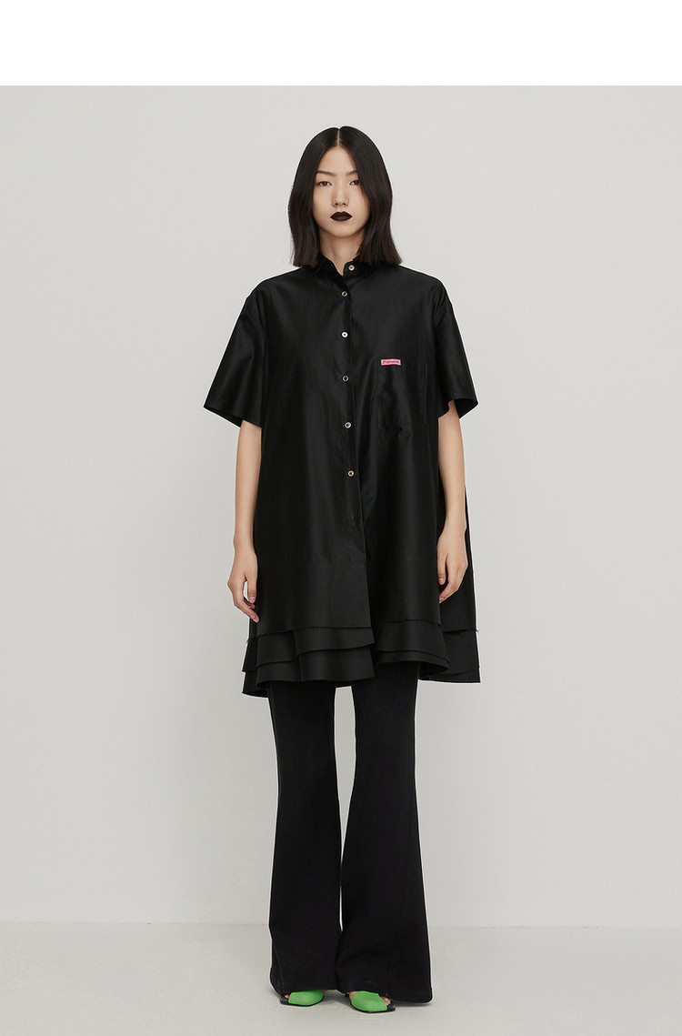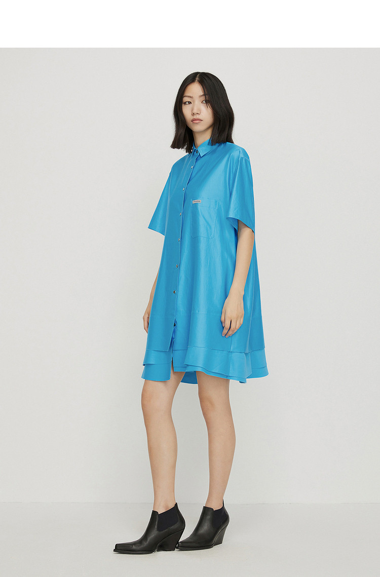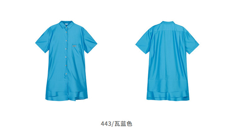 商品名称:夏连衣裙A型休闲纯色拼接衬衫领女短裙 043147