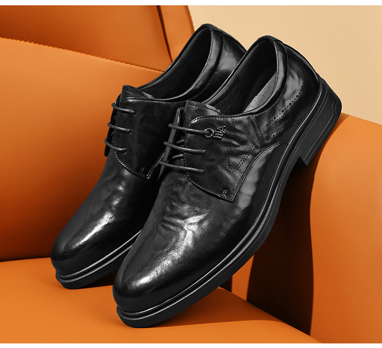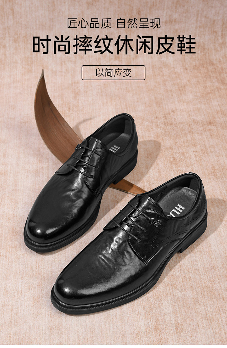 皮鞋男商务休闲男鞋皮鞋简约摔纹商务通勤男士皮鞋 716111