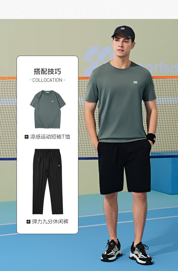 商品名称:【凉感防晒】夏季运动SSS纯色抗静电圆领男士短袖T恤 889544