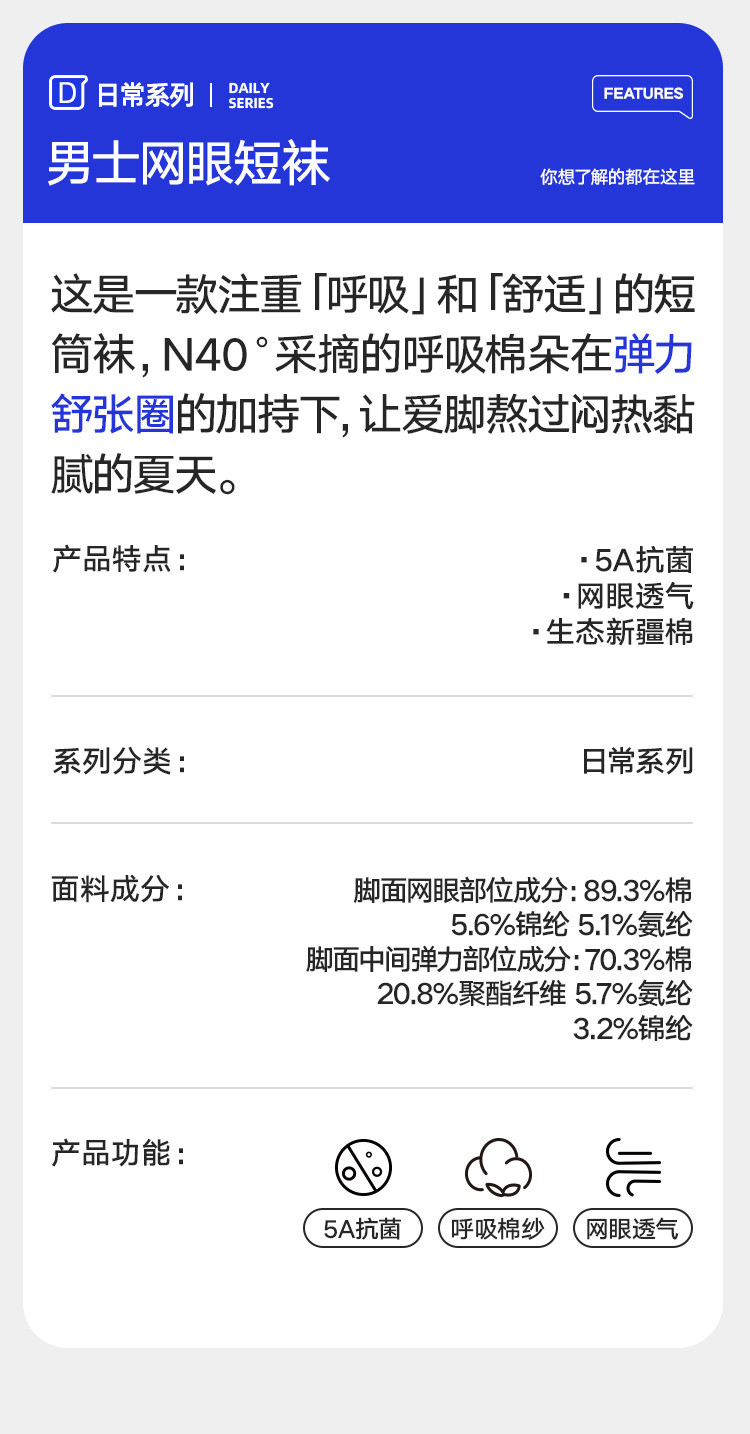 商品名称:【5A抑菌 网眼透气】 6双装男士短袜夏季薄款运动袜子男船袜 604698