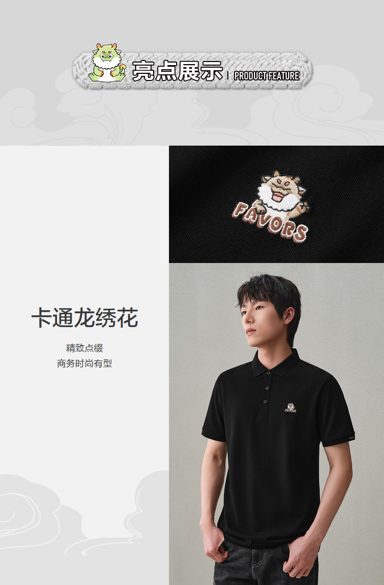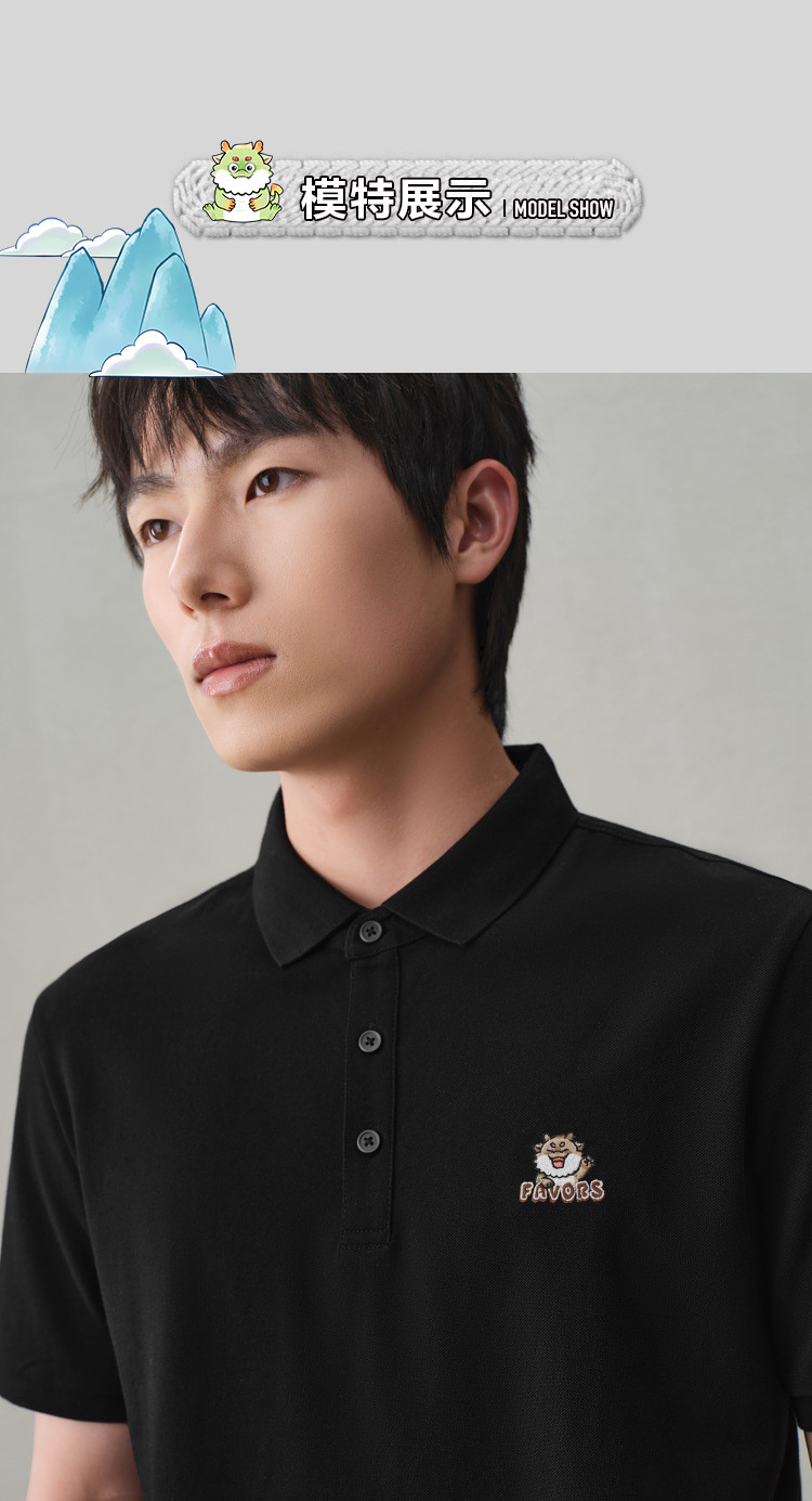 商品名称:【冰感科技棉】纯色凉感绣花抗菌防晒男士短袖POLO衫 356488