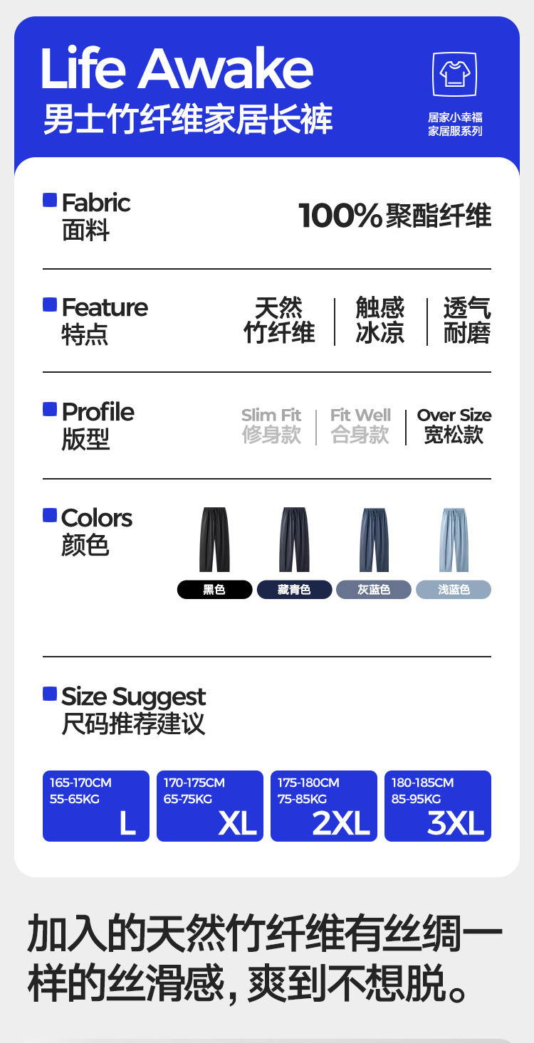 商品名称:【冰丝透气】春夏男士家居裤单件清凉宽松休闲男式睡裤可外穿长裤 571930