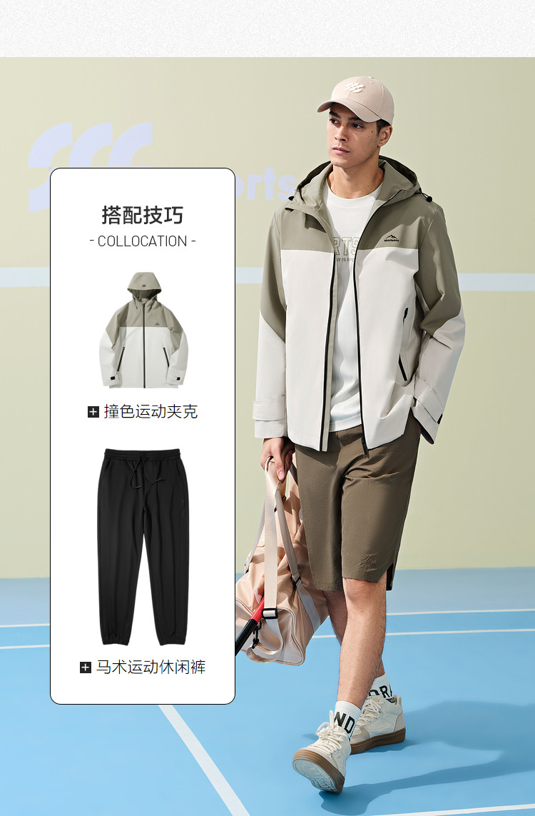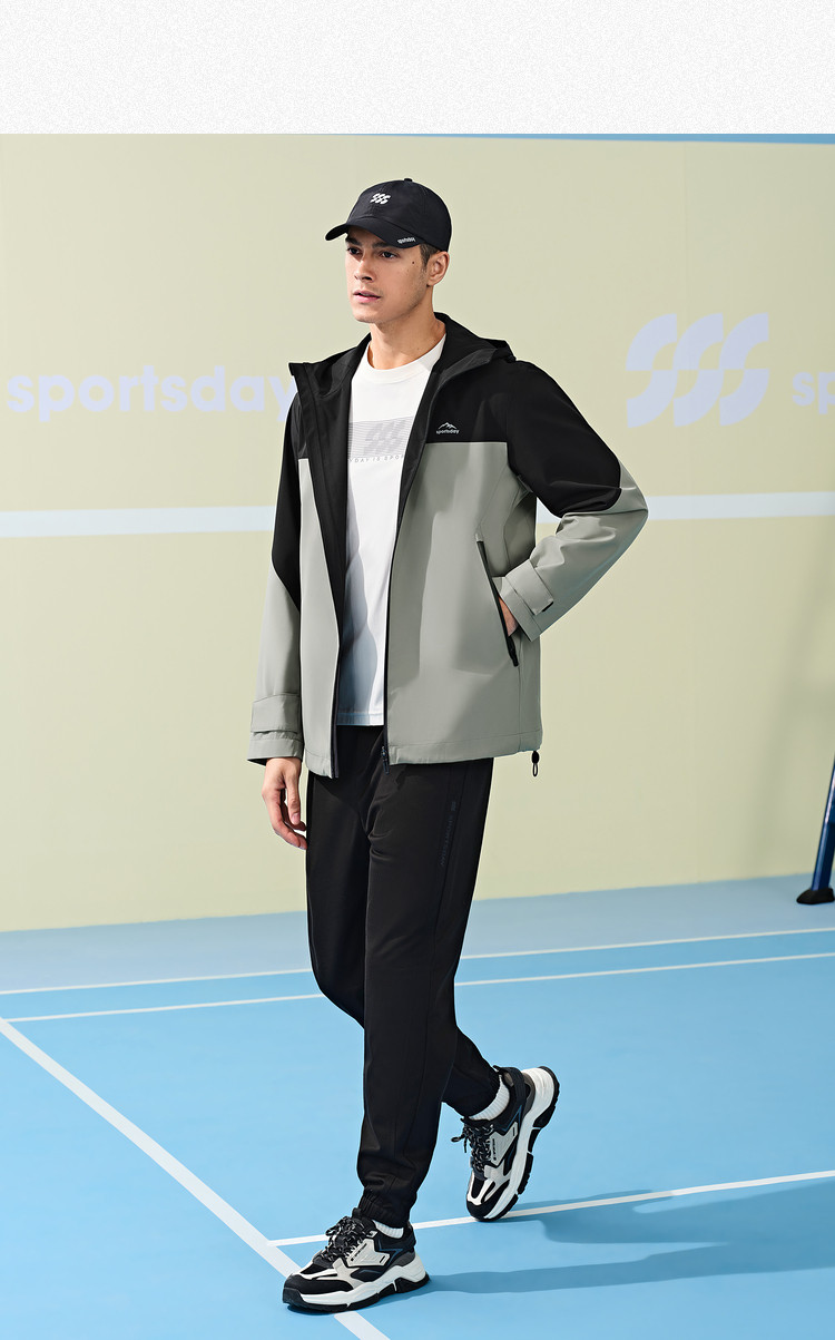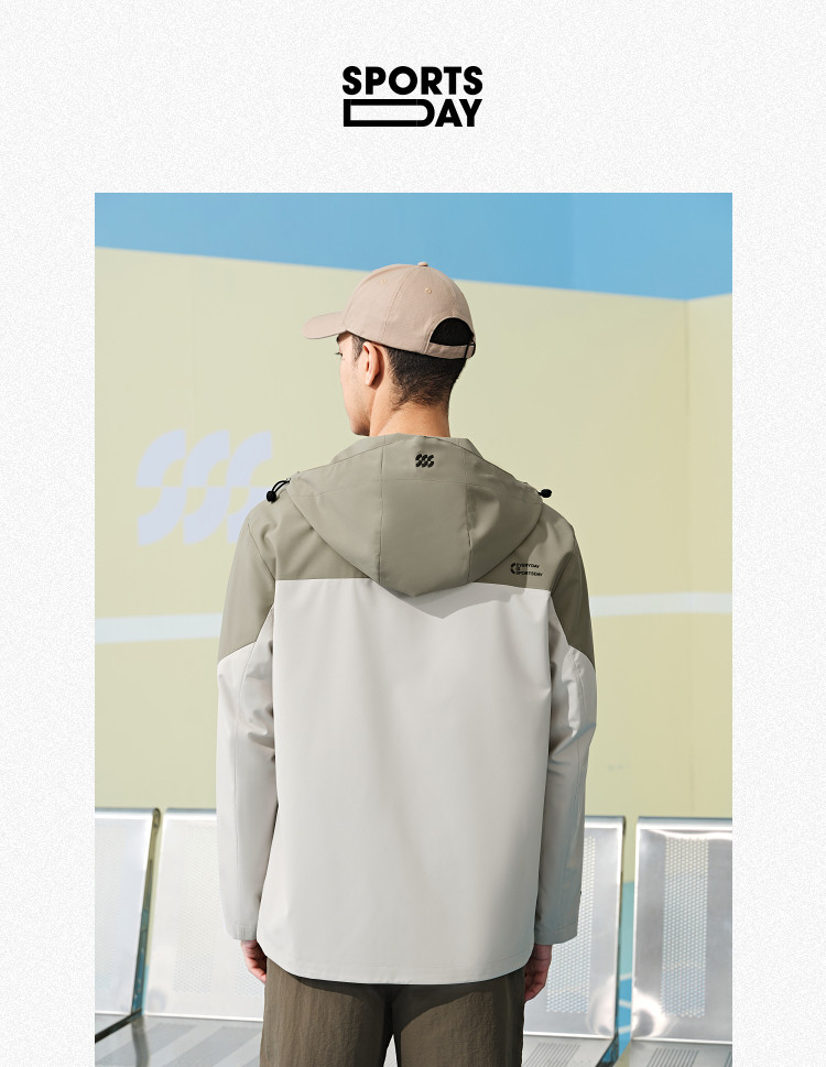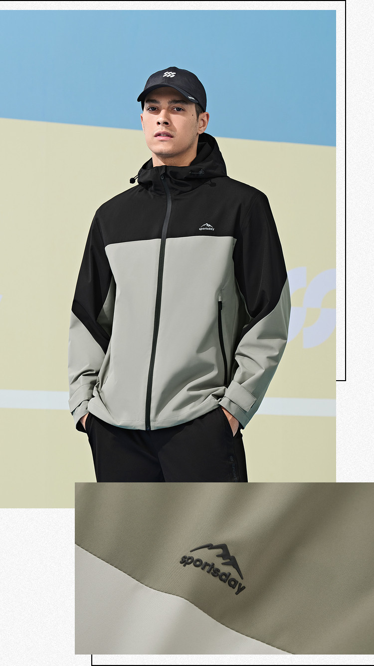 商品名称:【三防科技】春秋运动SSS撞色印花抽绳连帽保暖防风男士夹克 308552