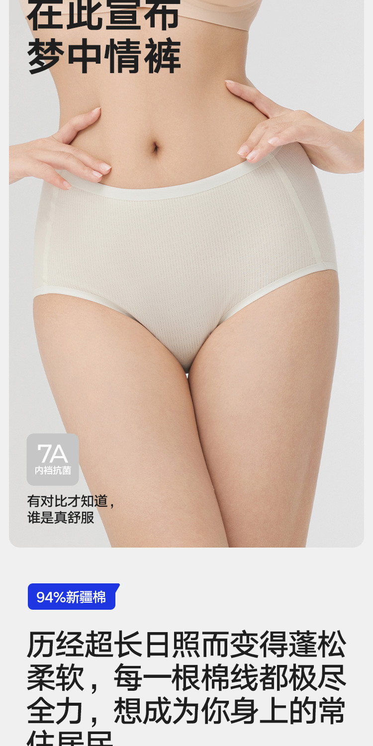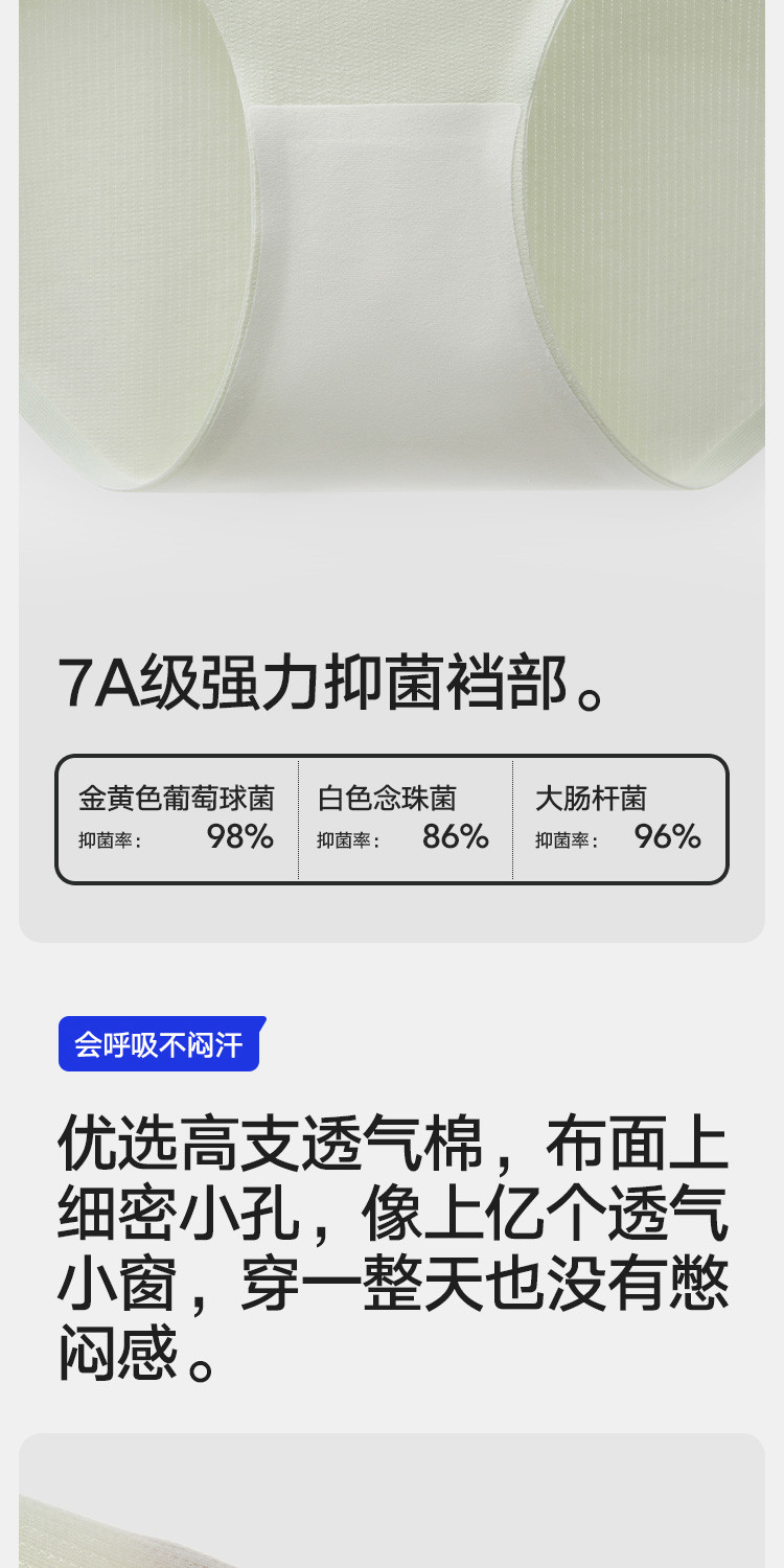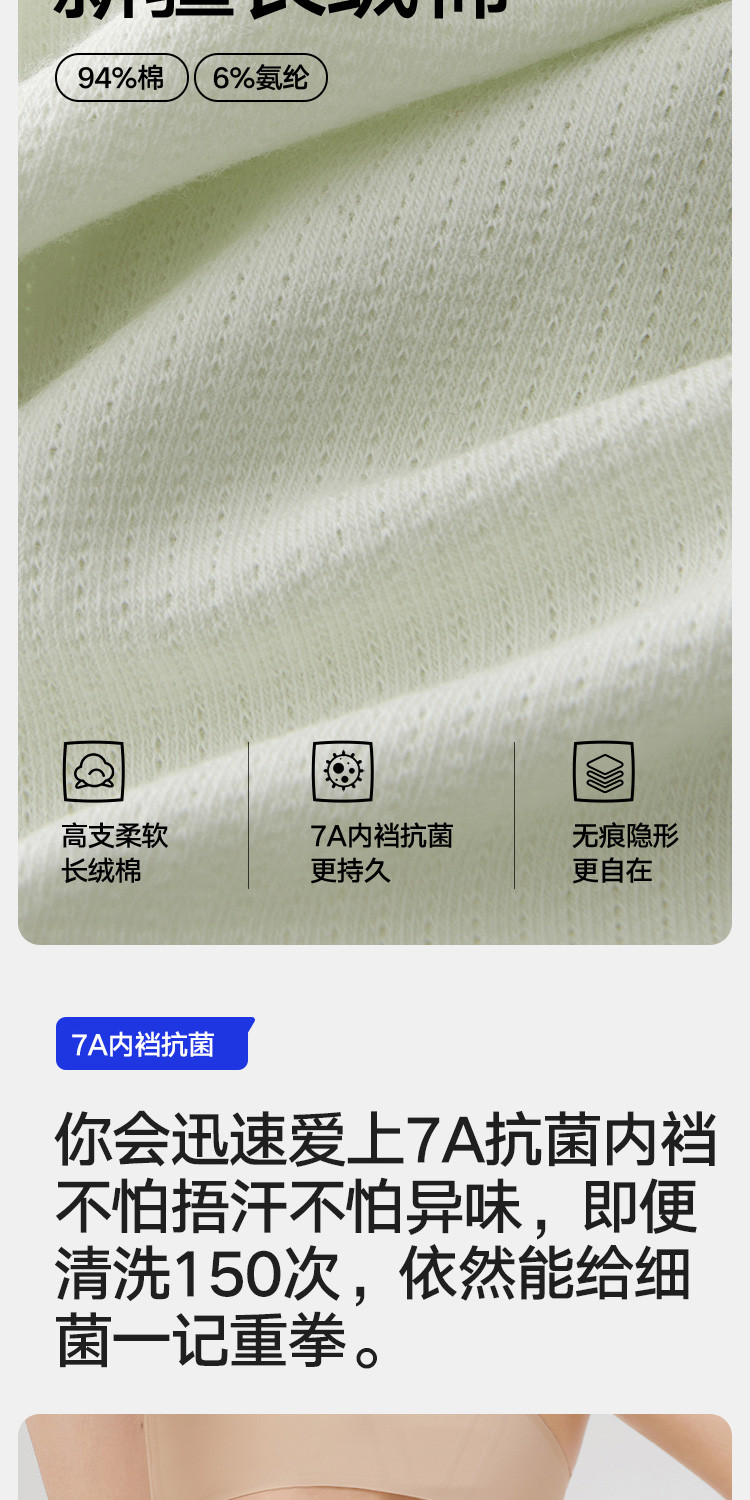商品名称:【7A抑菌】3条装女士三角内裤女生高腰纯棉裆网眼透气无痕短裤 136154