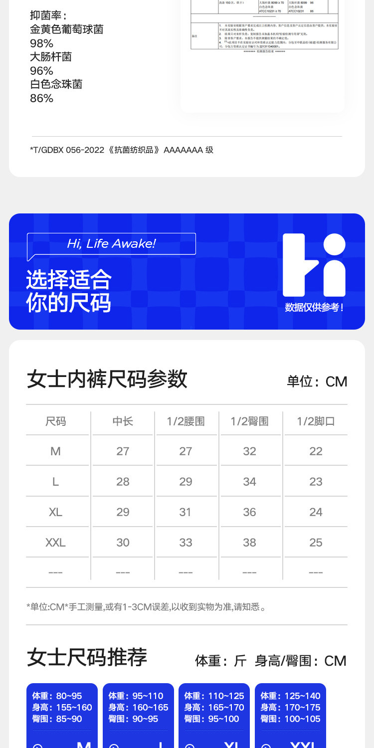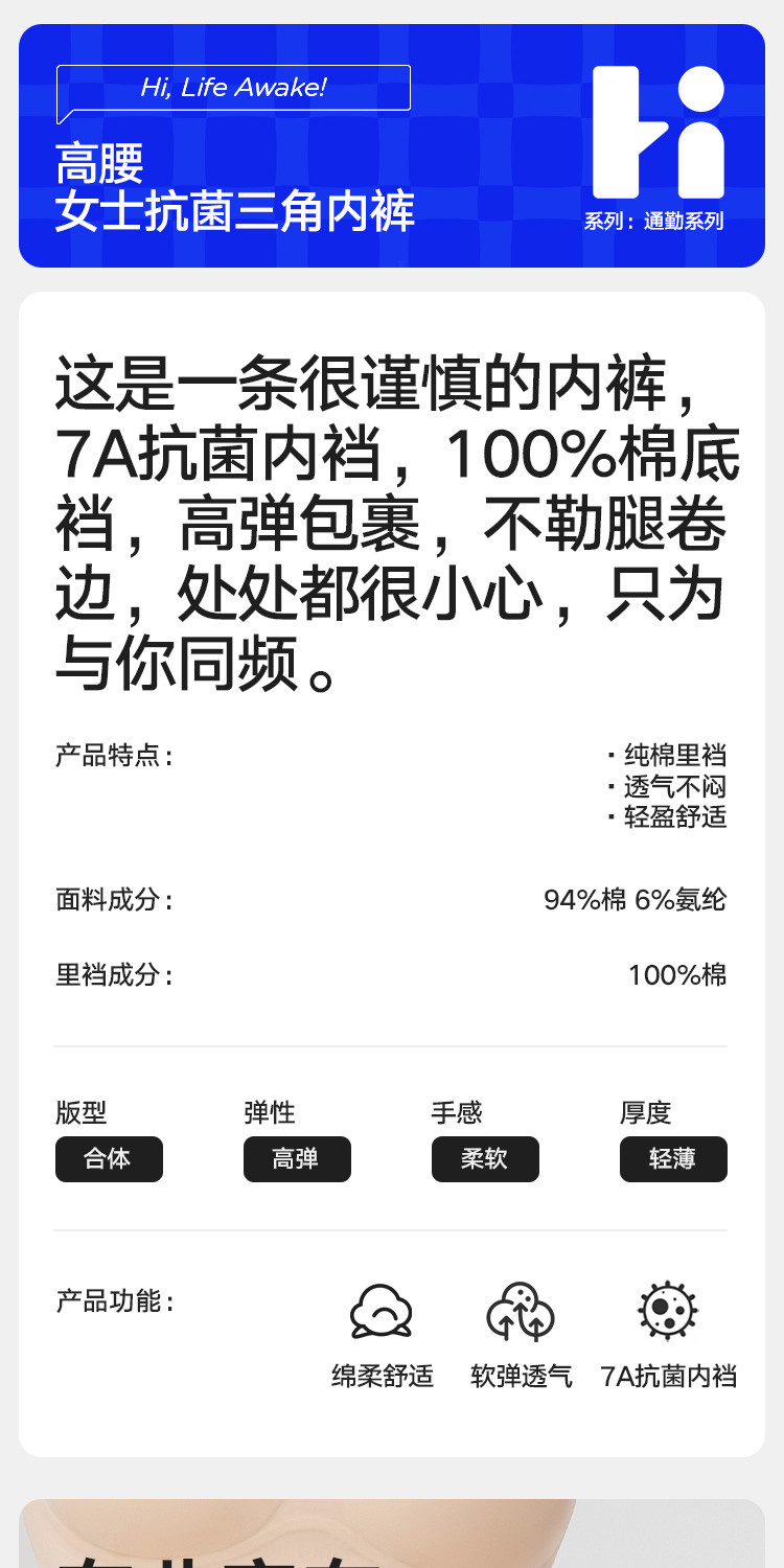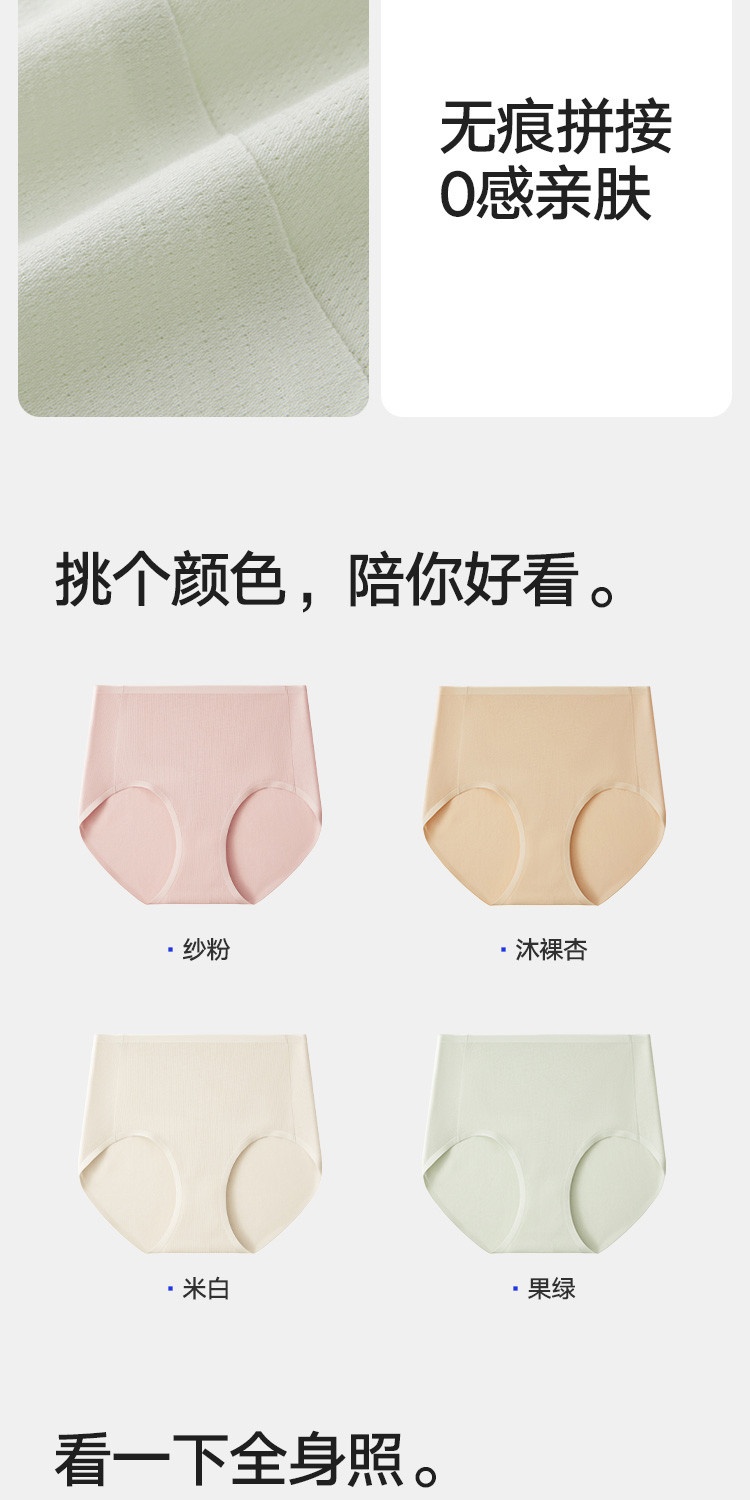 商品名称:【7A抑菌】3条装女士三角内裤女生高腰纯棉裆网眼透气无痕短裤 136154