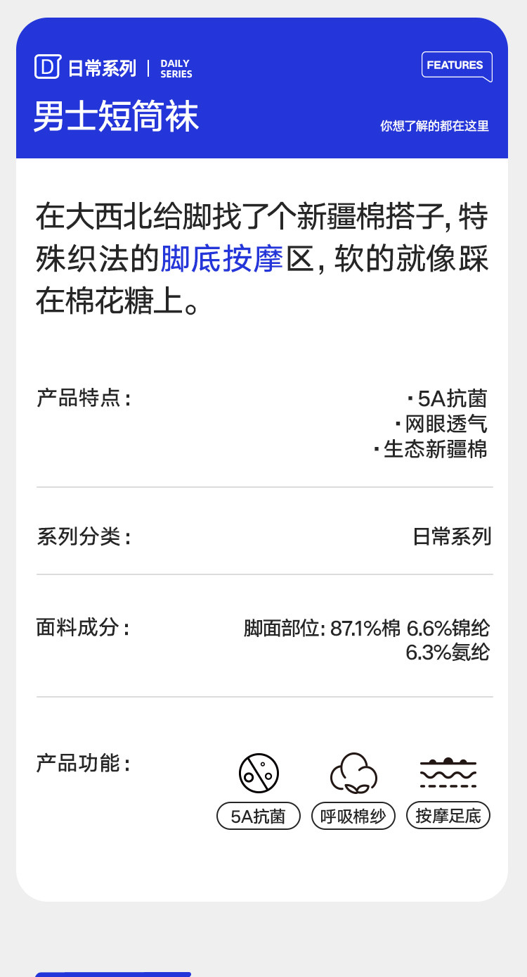 商品名称:【新疆棉 5A抑菌】 6双装短袜男士网眼透气棉柔舒适透气袜子 871962